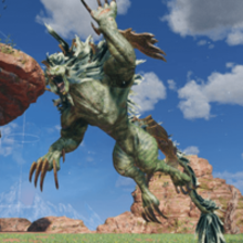 後方へ大きく下がった後、前方へ扇状のブレスを吐きます。空中へ逃げるのが安全ですが、上への範囲も大きいためフォトンダッシュからの2段ジャンプが必要です。