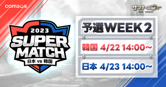 スマートフォン向けモバイルゲームをサービスしている株式会社Com2uS Japanは、iOS/Androidで大好評配信中の本格RPG『サマナーズウォー: Sky Arena』(以下、 サマナーズウォー)にて、4月22~23日14時から日韓ライバル戦「JAPAN vs KOREA SUPER MATCH 2023」の予選を開催することを発表した。