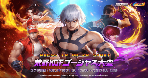 NetEase Gamesが開発・運営する大人気バトルロワイヤルゲーム『荒野行動』にて、2023年1月31日から2023年2月13日の期間中、対戦型格闘ゲーム『THE KING OF FIGHTERS '98 ULTIMATE MATCH』(以下KOF'98 UM)とのコラボイベント第4弾を開催することを知らせた。