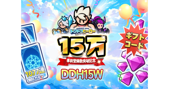 GOAT GAMES COMPANY LIMITEDは、2025年6月11日現在、全世界で1億DLを突破した超人気の最新作スマートフォン向け冒険RPG『ドンドコヒーロー:オープンワールドの大冒険』(略称:ドンヒロ)』の事前登録者数が15万人を突破したことを記念し、下記のギフトコードを全ユーザーに配布することを発表した。