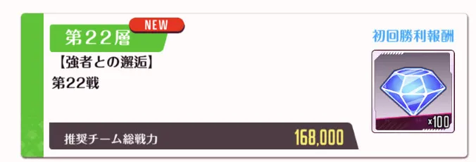 強者との邂逅は恒常開催の特別演習で、特別演習回数が残っている限り自由に参加可能です。全部で100階層まで用意された階層は再攻略などはできず、クリアするたびにより手強い相手と戦う必要があります。