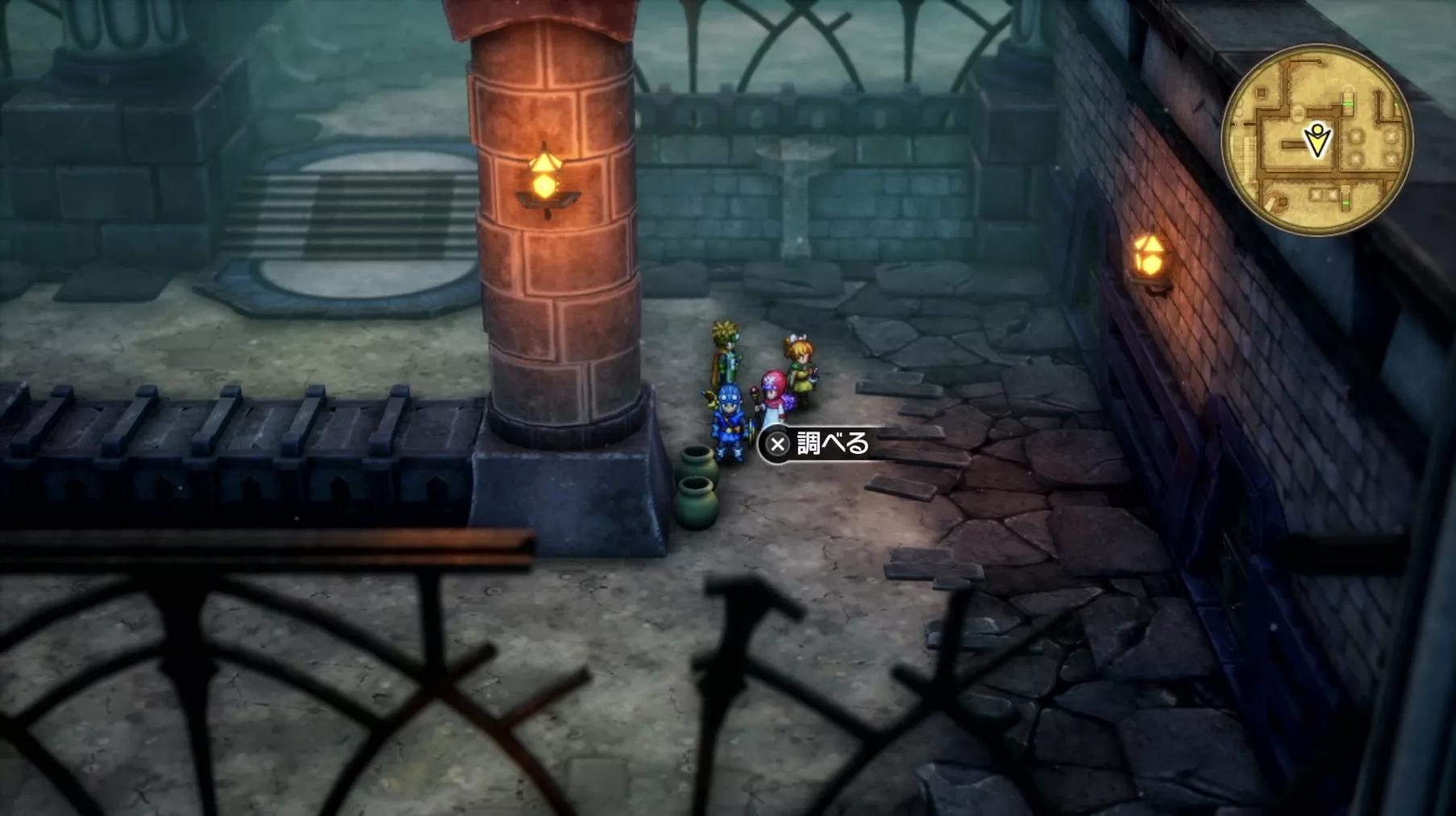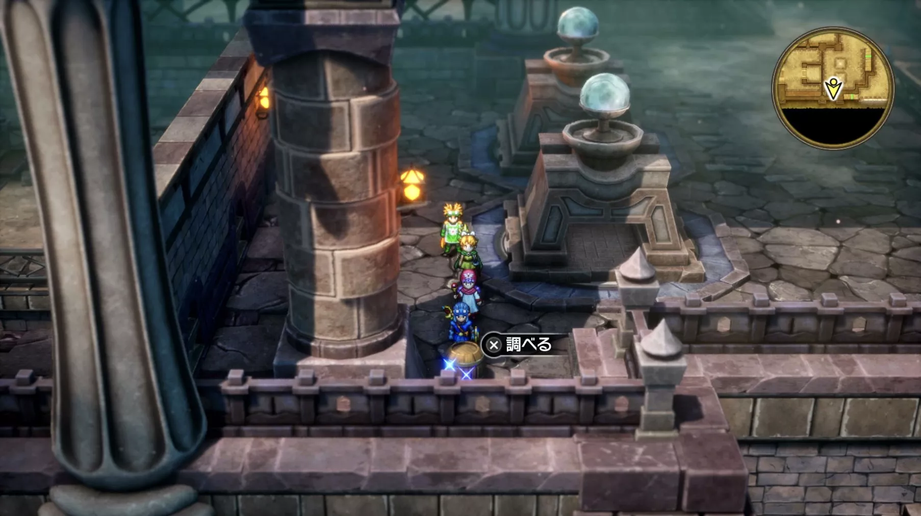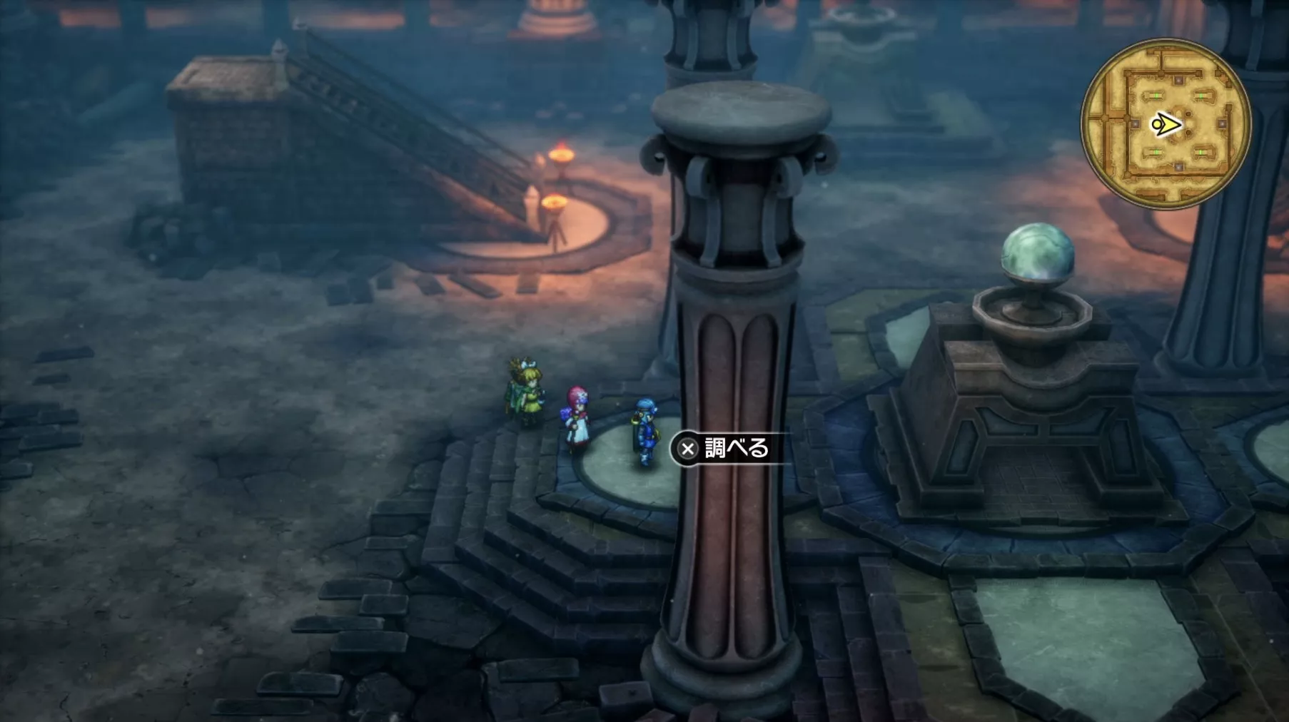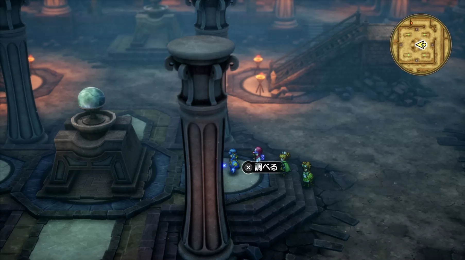 一階の階段が四つあるエリア。聖水がある左右対称の左側の模様ににおい袋が3つありますが、写真には掲載されていません。追記願います