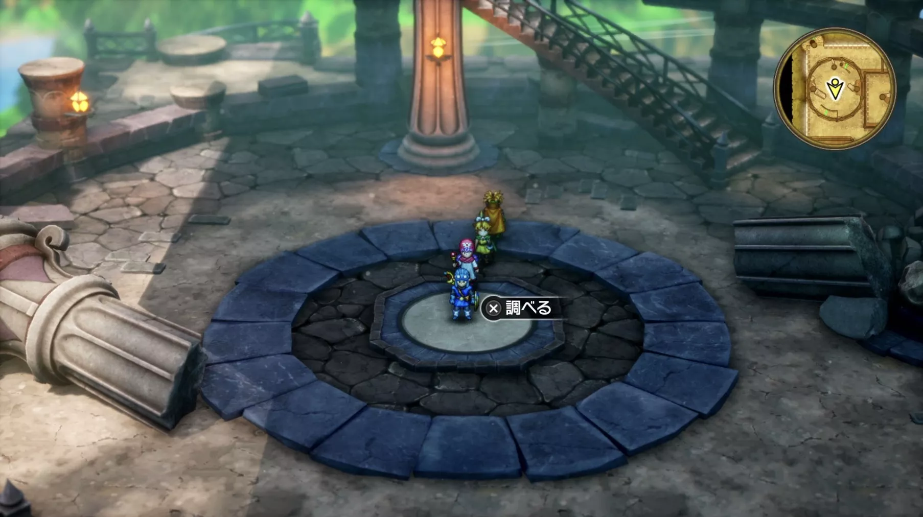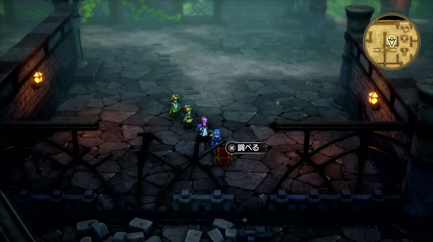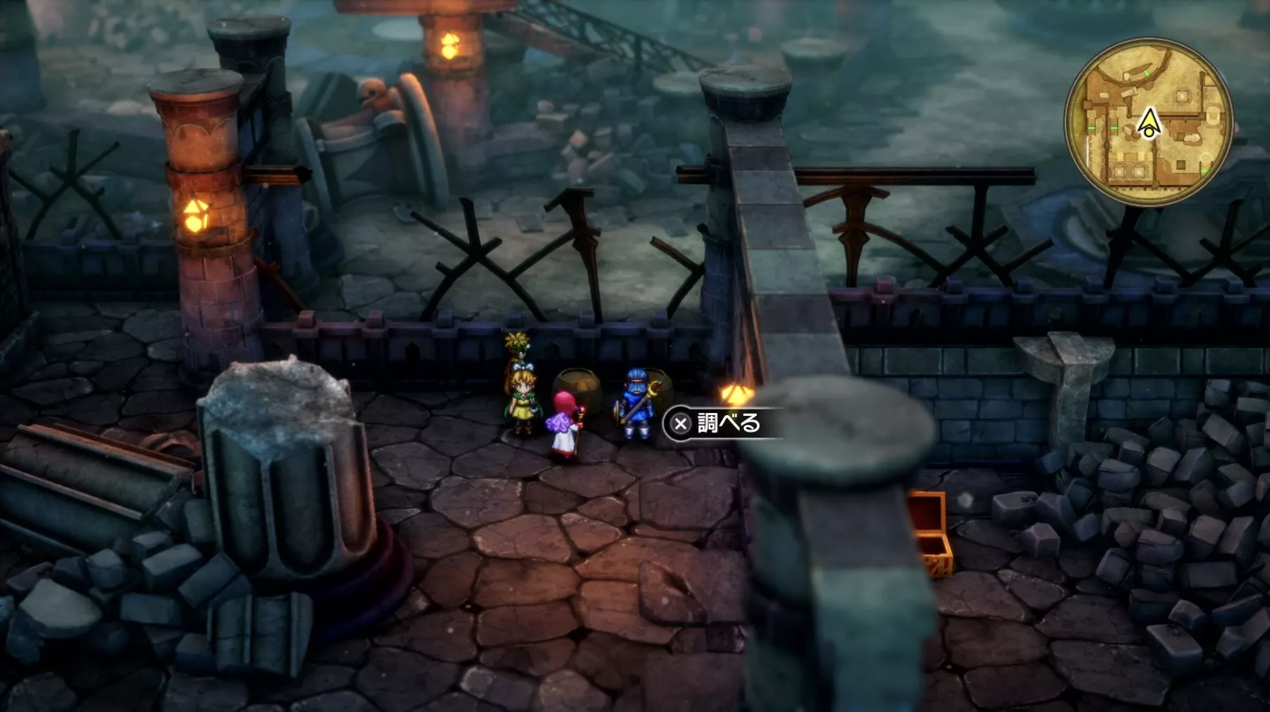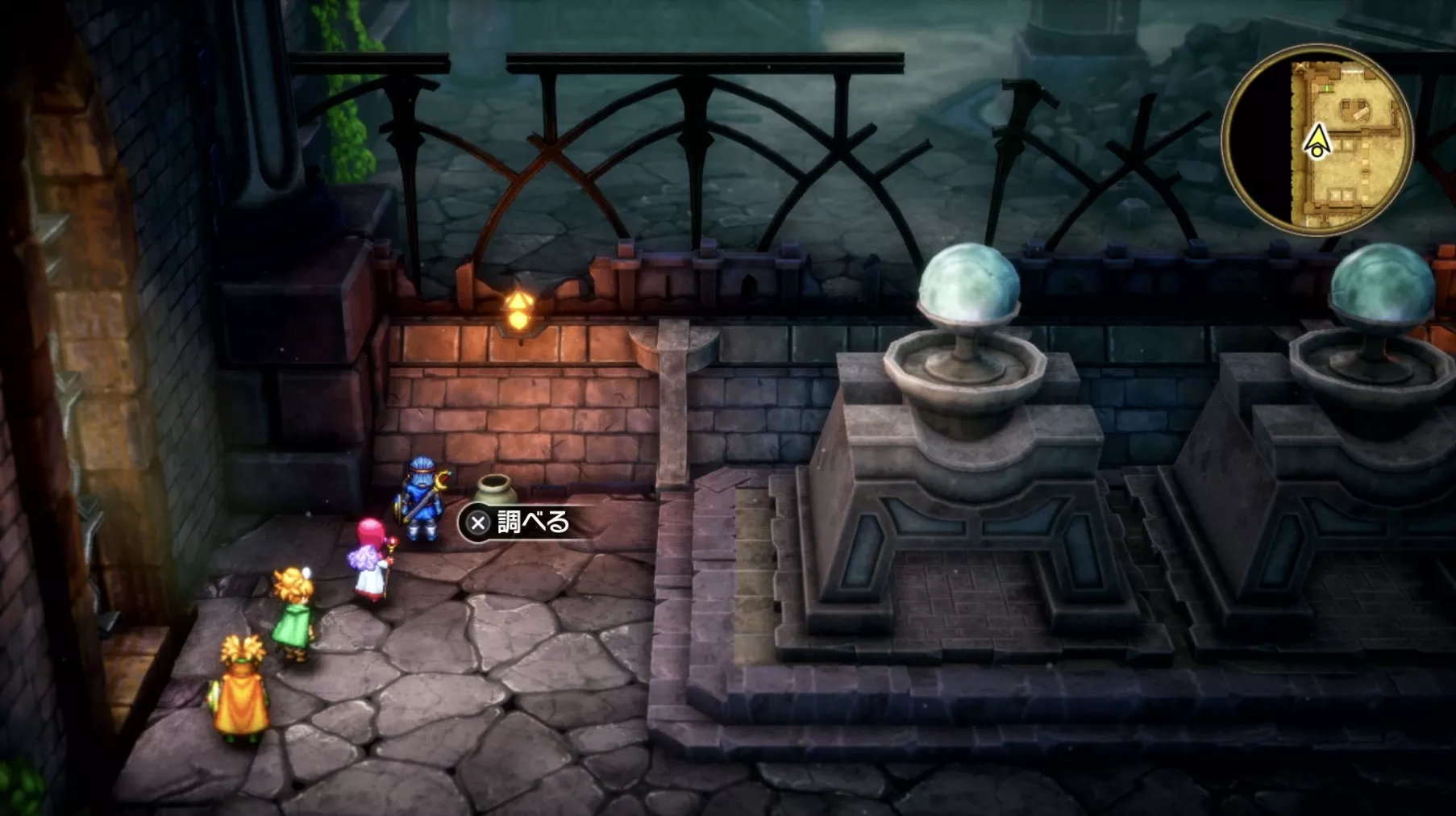 一階の階段が四つあるエリア。聖水がある左右対称の左側の模様ににおい袋が3つありますが、写真には掲載されていません。追記願います