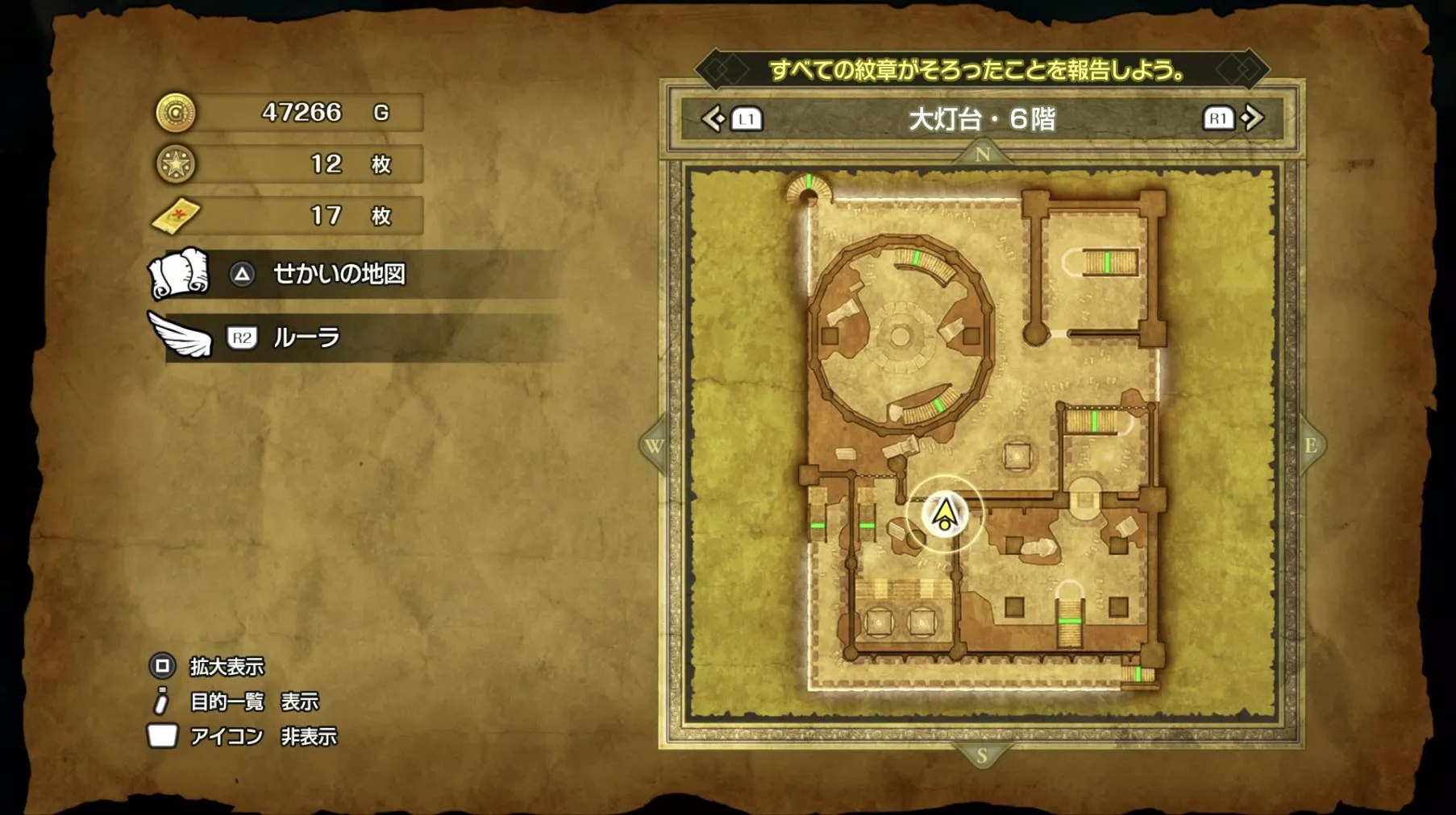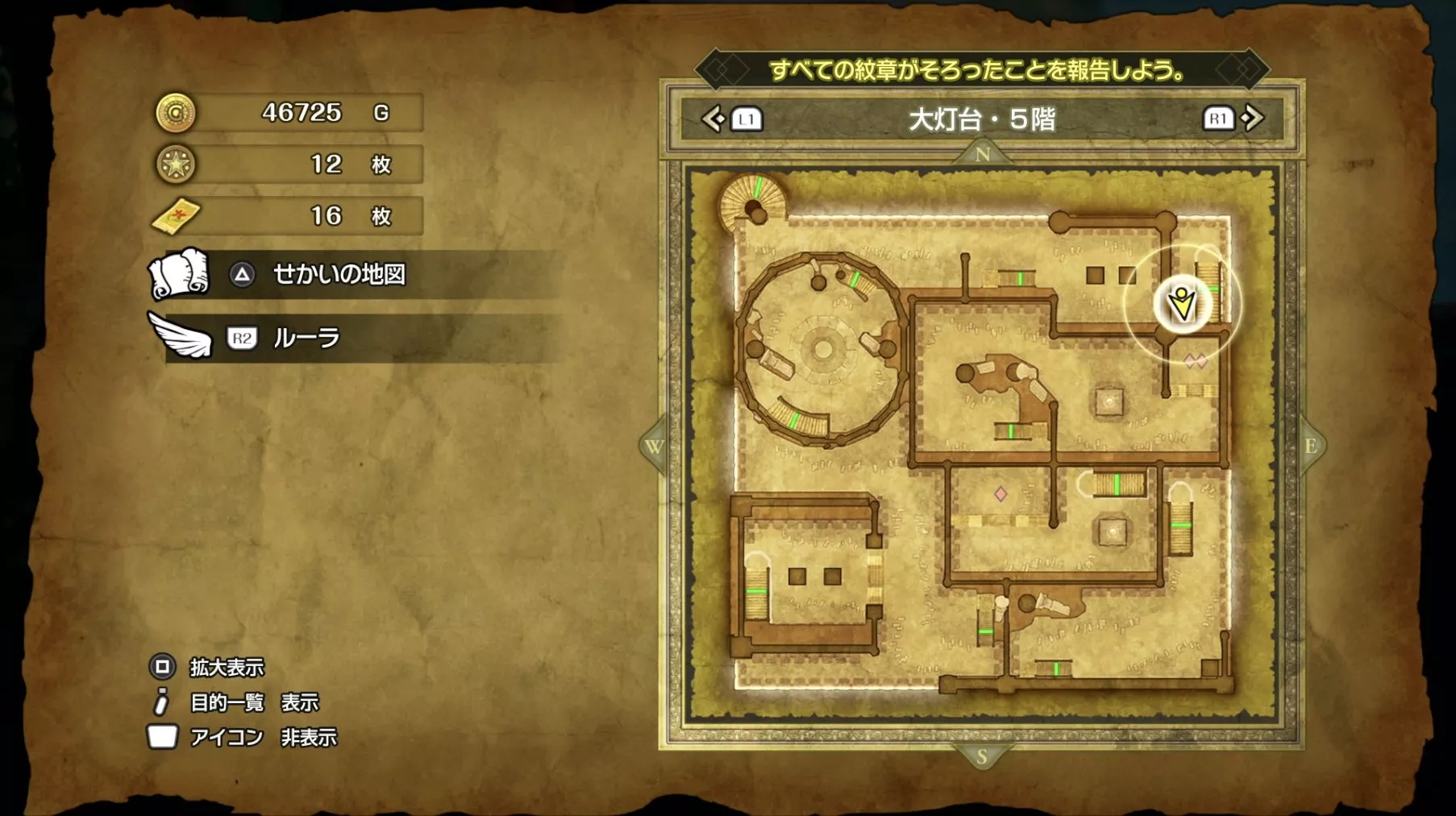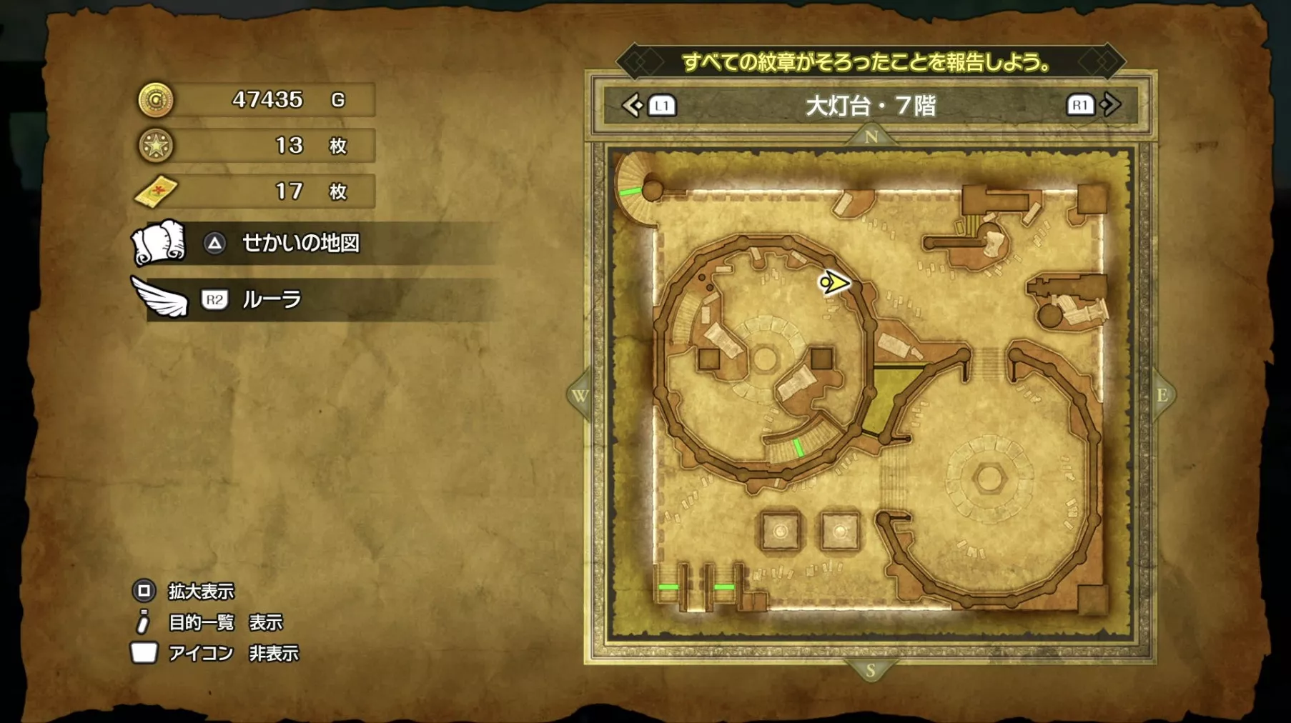 大灯台の「ちいさなメダル」の場所です。大灯台では7階で1枚の「ちいさなメダル」を入手することができます。