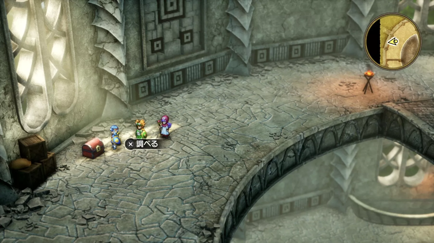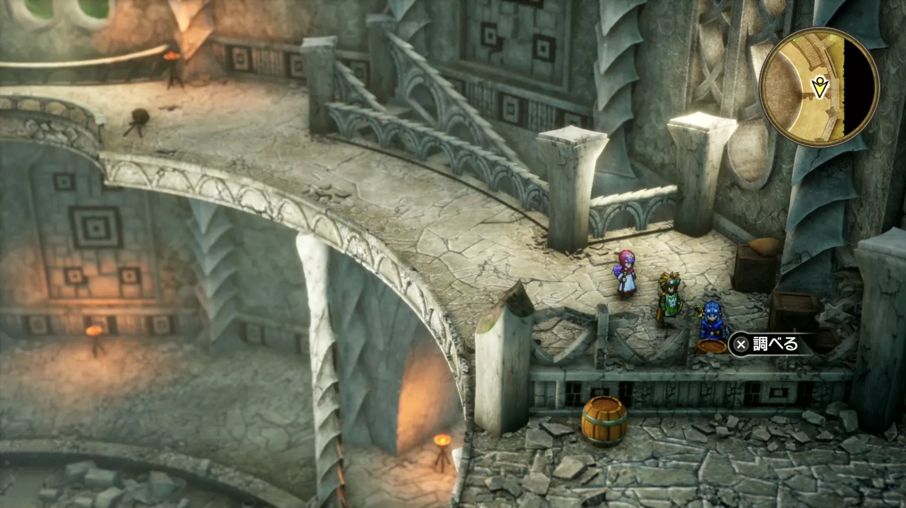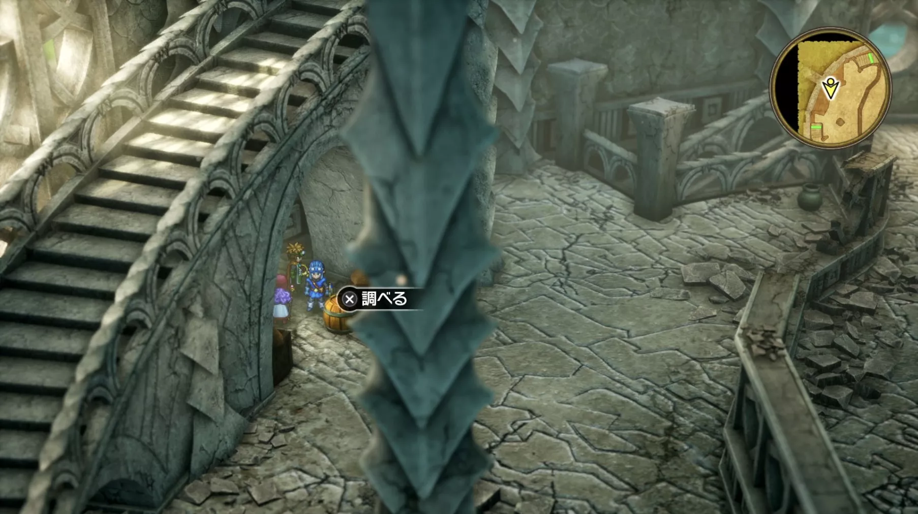 ほとんど一本道のため道なりに進みましょう。塔の最上階で「風のマント」を使うと向こう側の塔まで行き来できます。