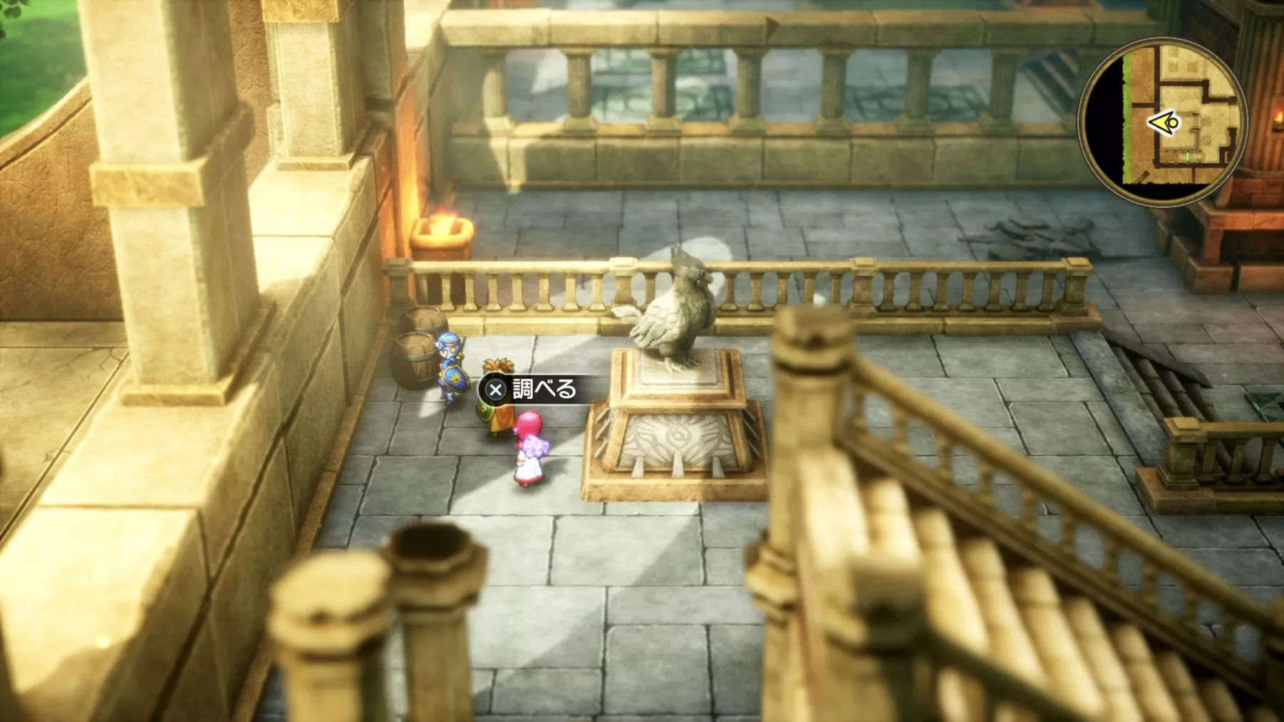 まどう老師の後ろにある階段から2階まで階段を降りると、風のマントを入手できます。