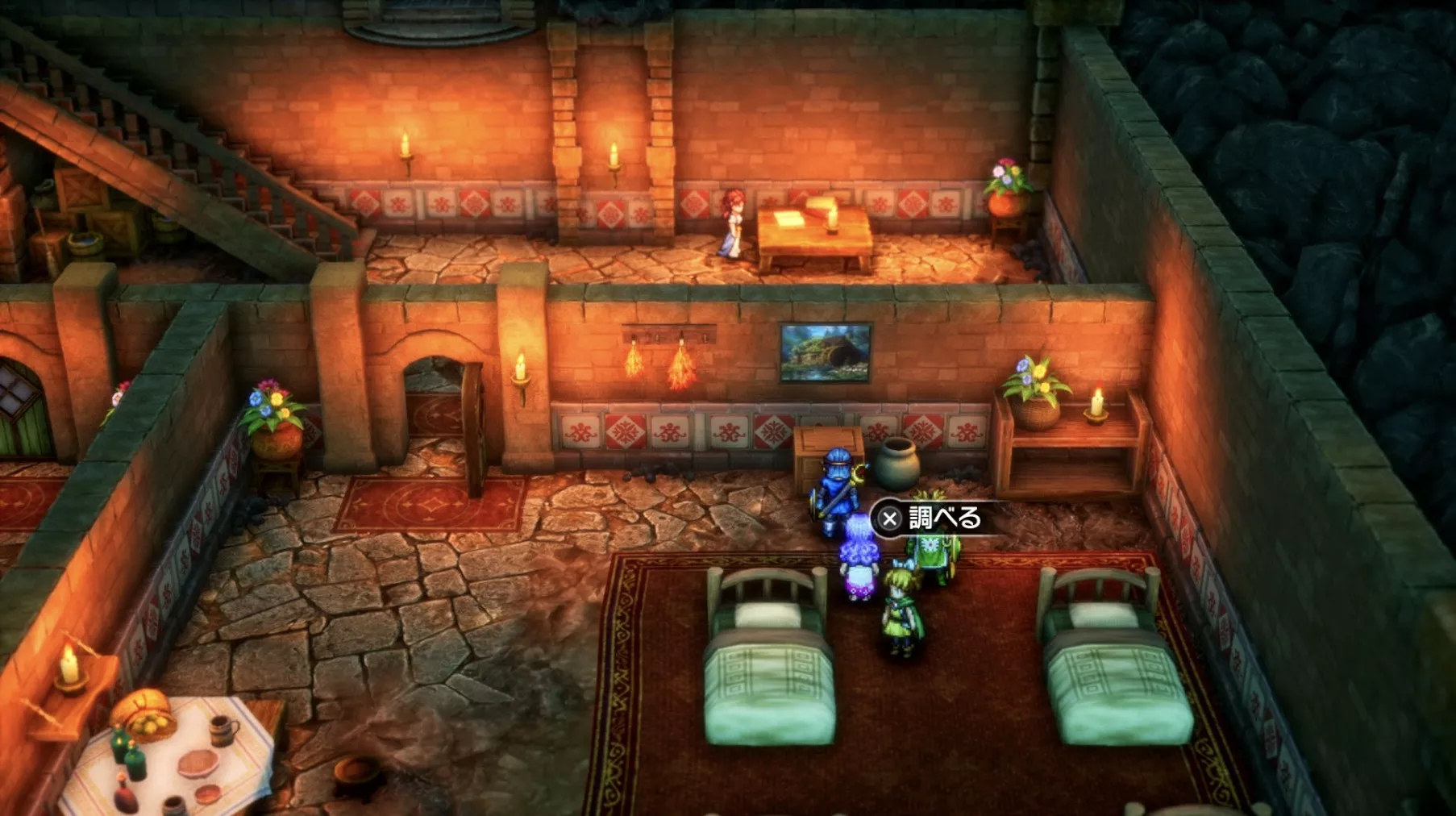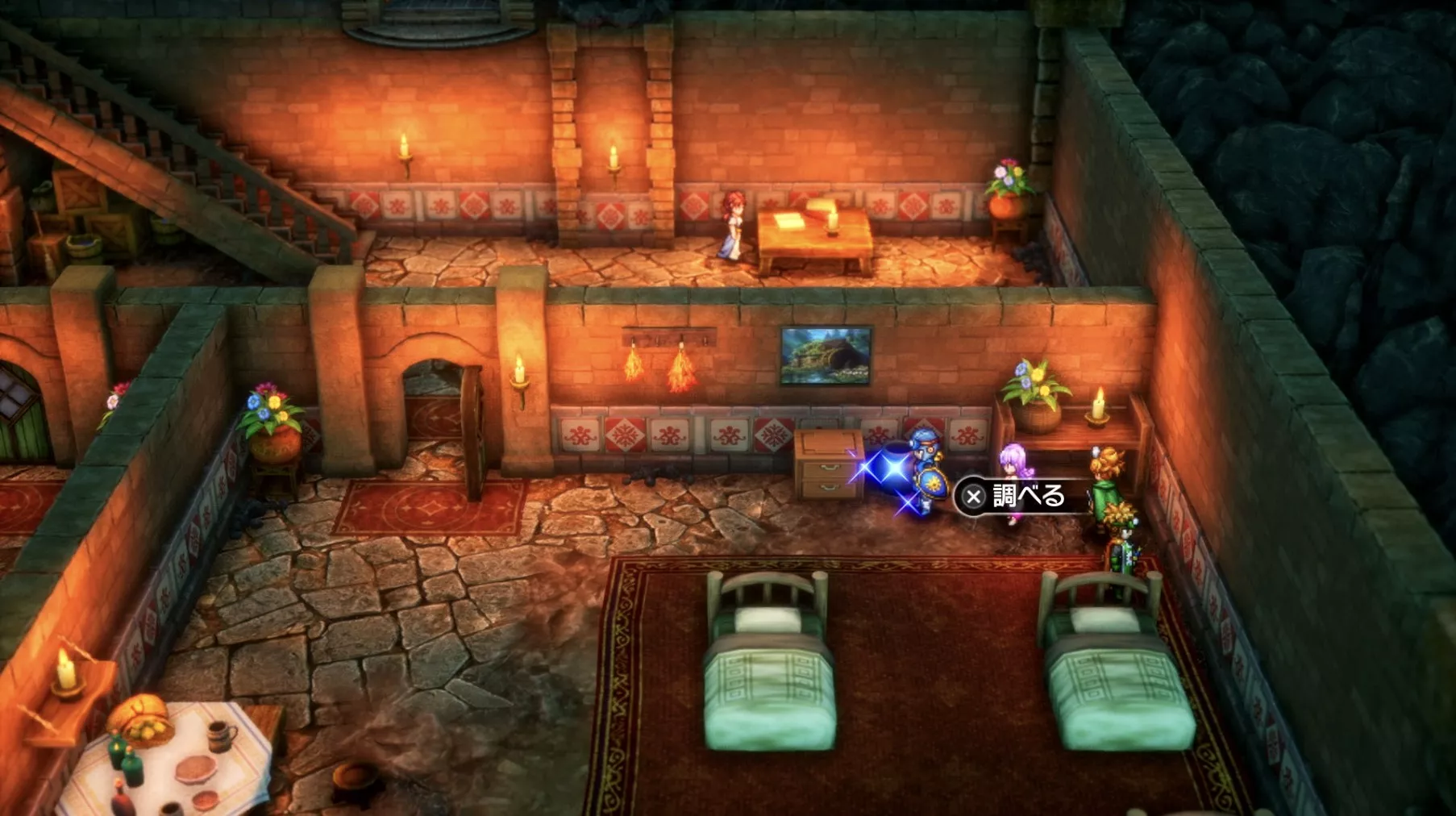 町の西側にある宿屋に泊まりましょう。宿屋に泊まるとイベントが発生します。