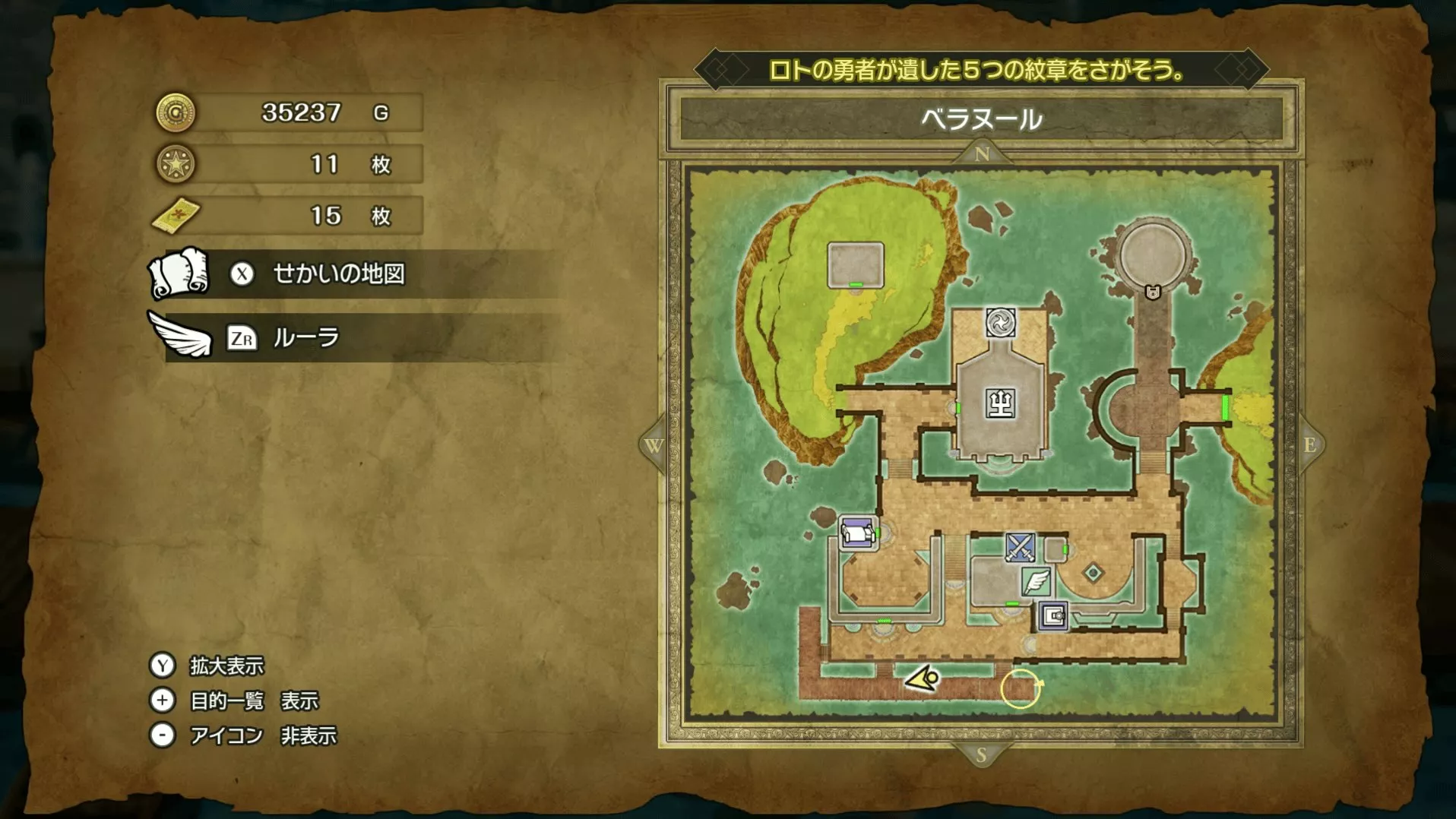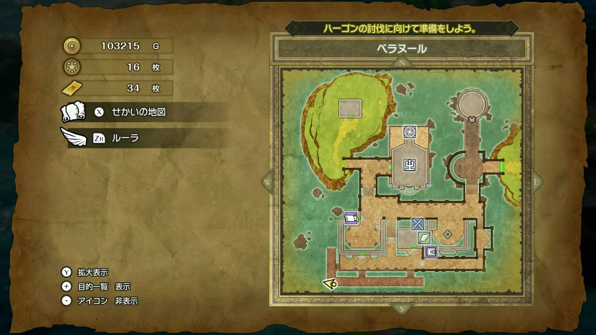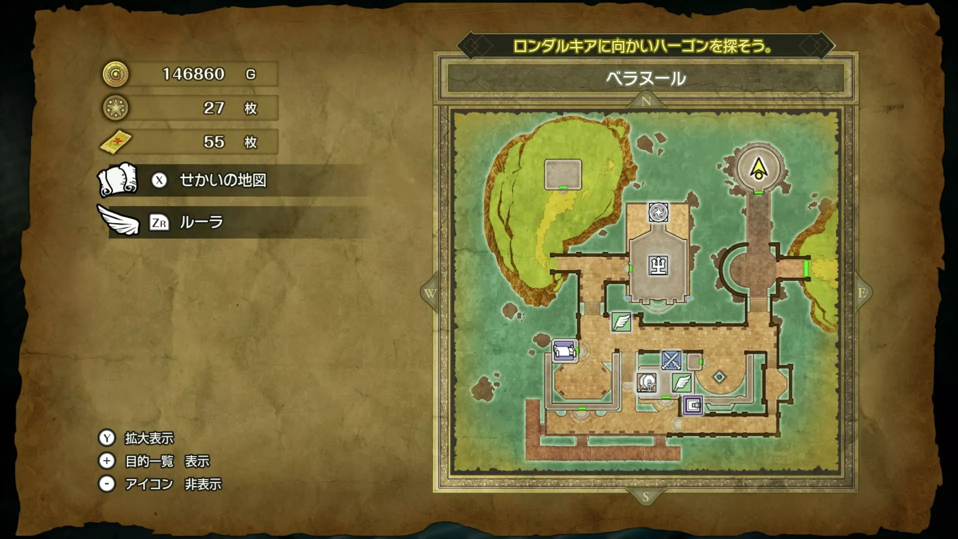 ベラヌールの場所と行き方です。まずはルプガナでのストーリーを進めて船を入手し、その後は南に向かって一直線で進みましょう。実際に移動する際は、一度オアシスにルーラで移動し、そこから船を使うといくらか楽になります。