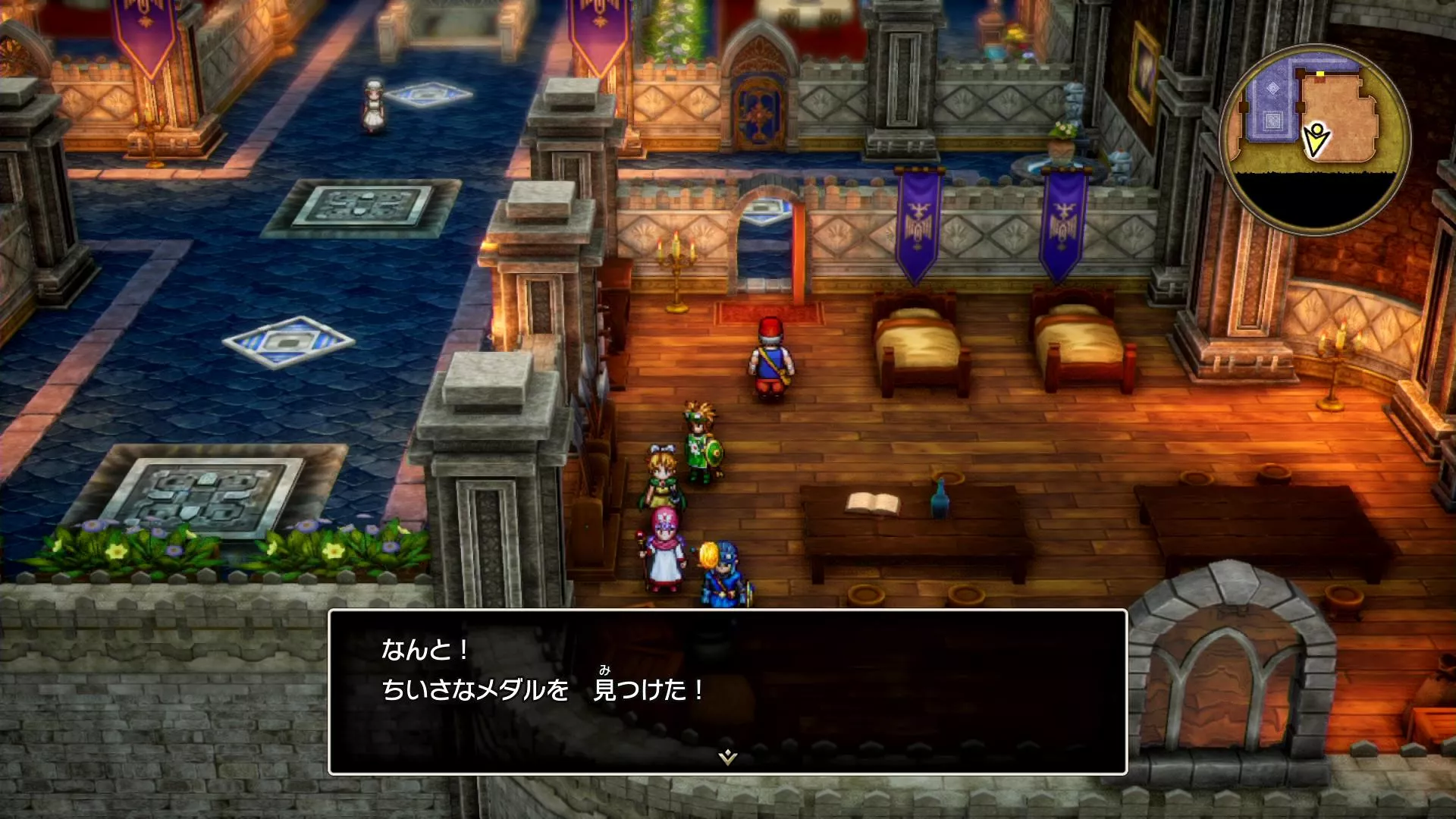 「ラダトーム」では小さなメダルを2つ回収できます。「ラダトーム城」の2階に1つ、宿屋に1つありますが、宿屋の小さなメダルは「魔法の鍵」が必要なので、中盤以降訪れて忘れずに回収しましょう。