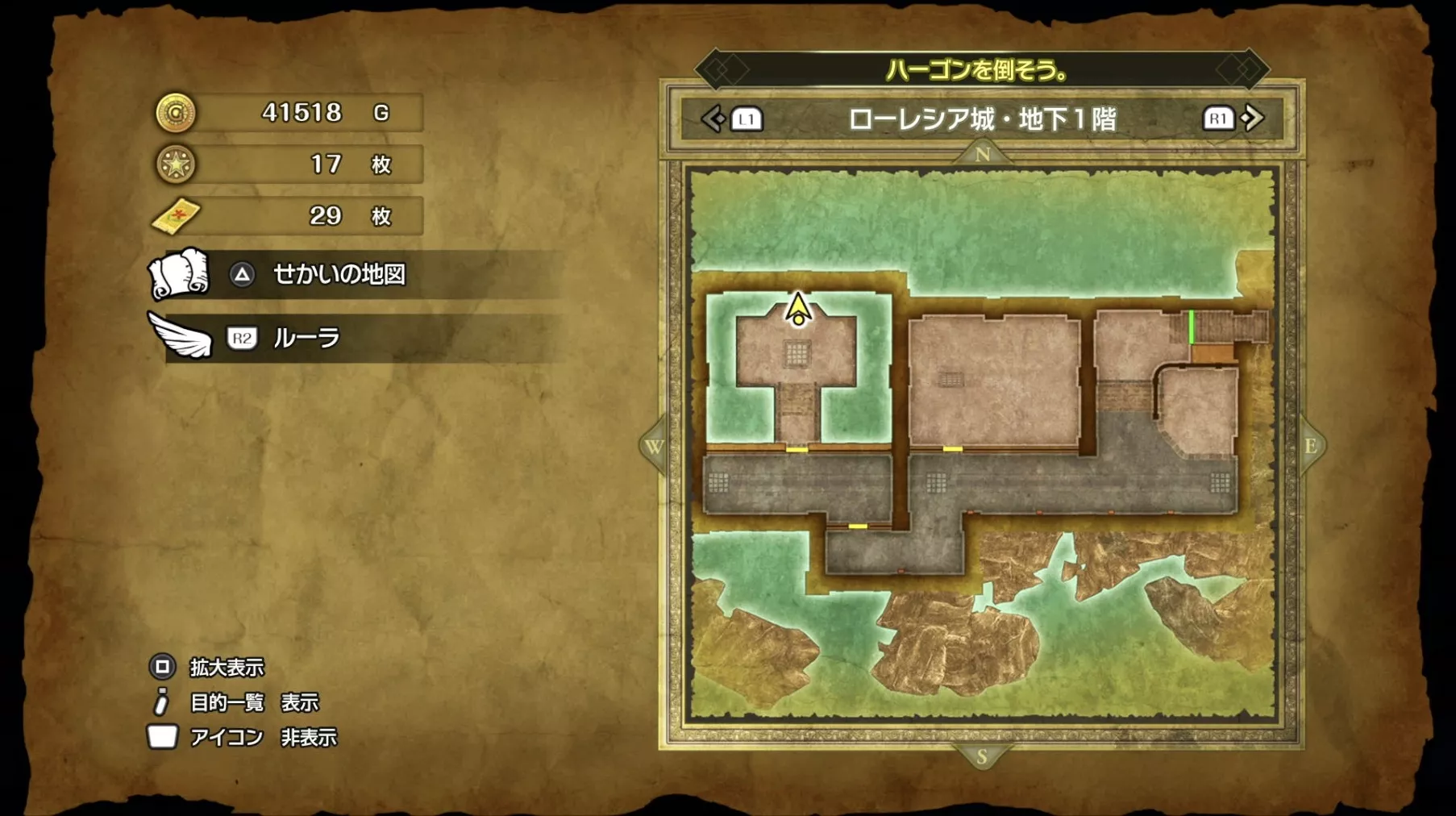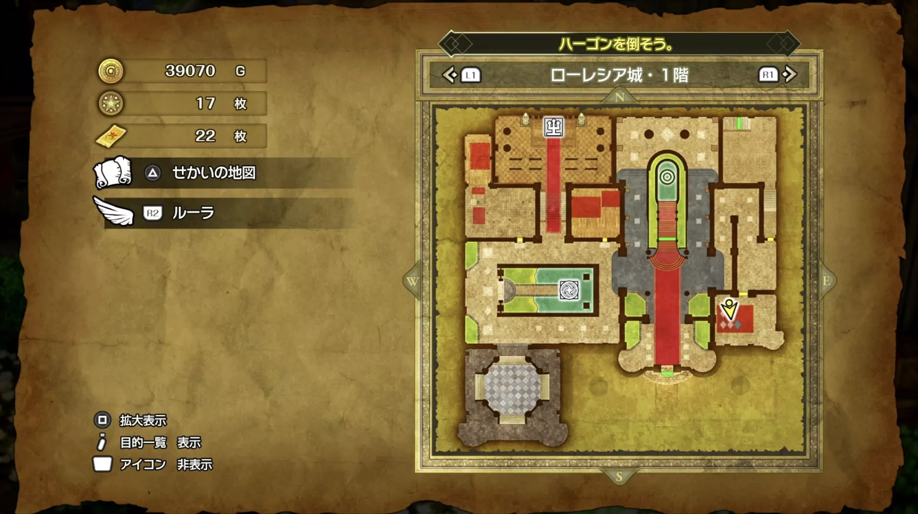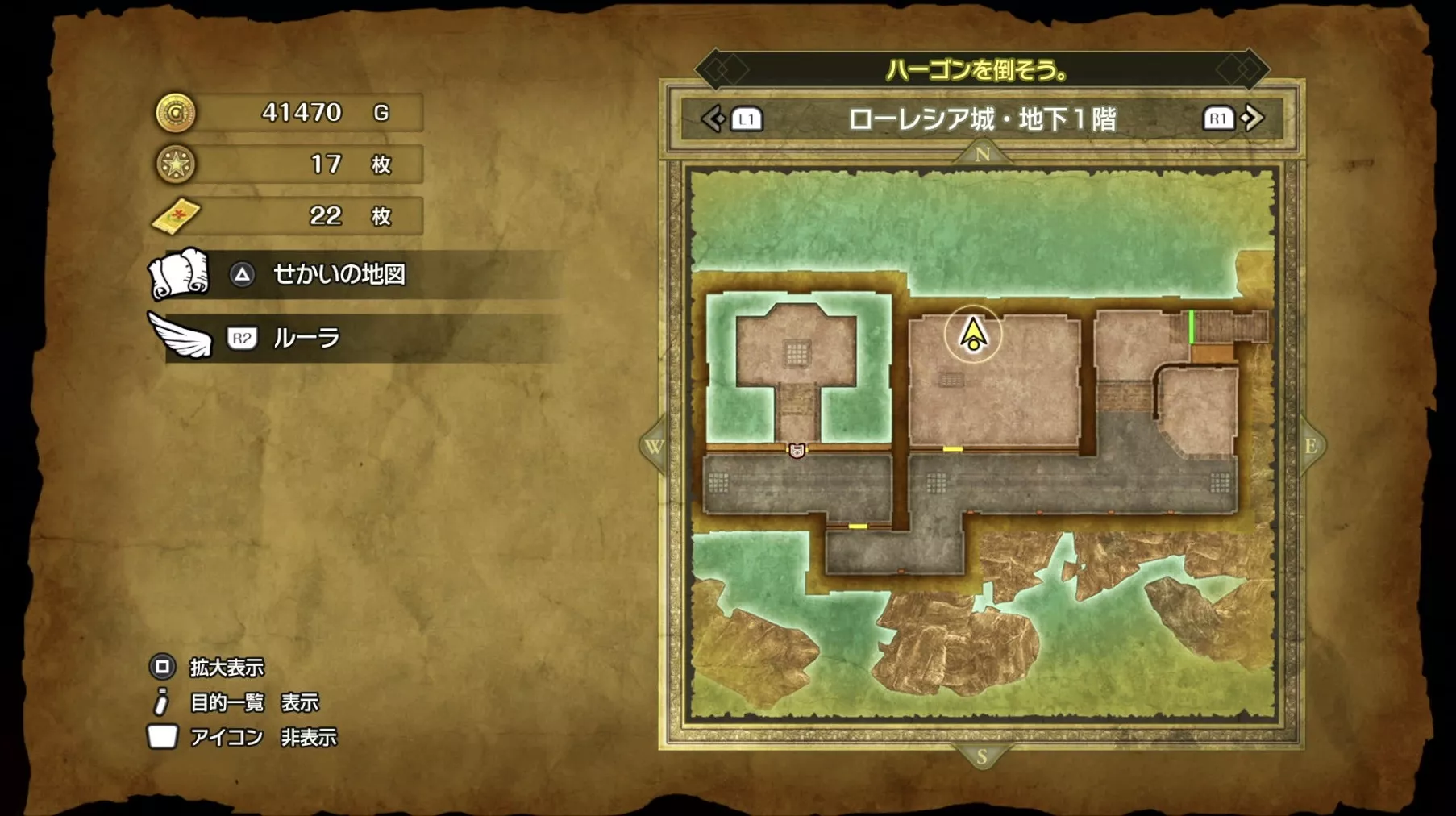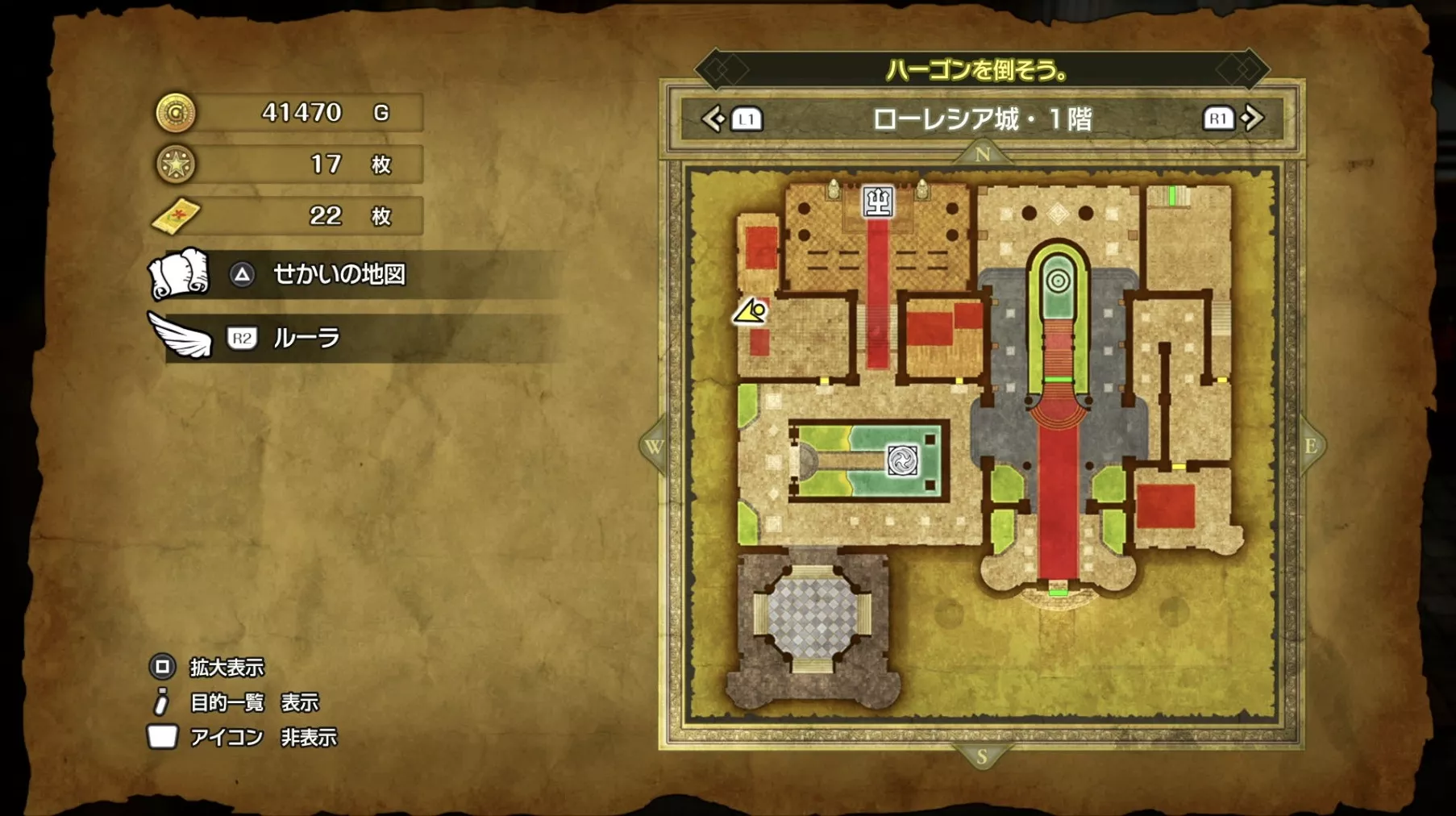 ローレシア城のマップです。城内部には鍵が必要な扉や宝箱が多く存在するので、各種鍵を入手したらその度に探索し直しましょう。
