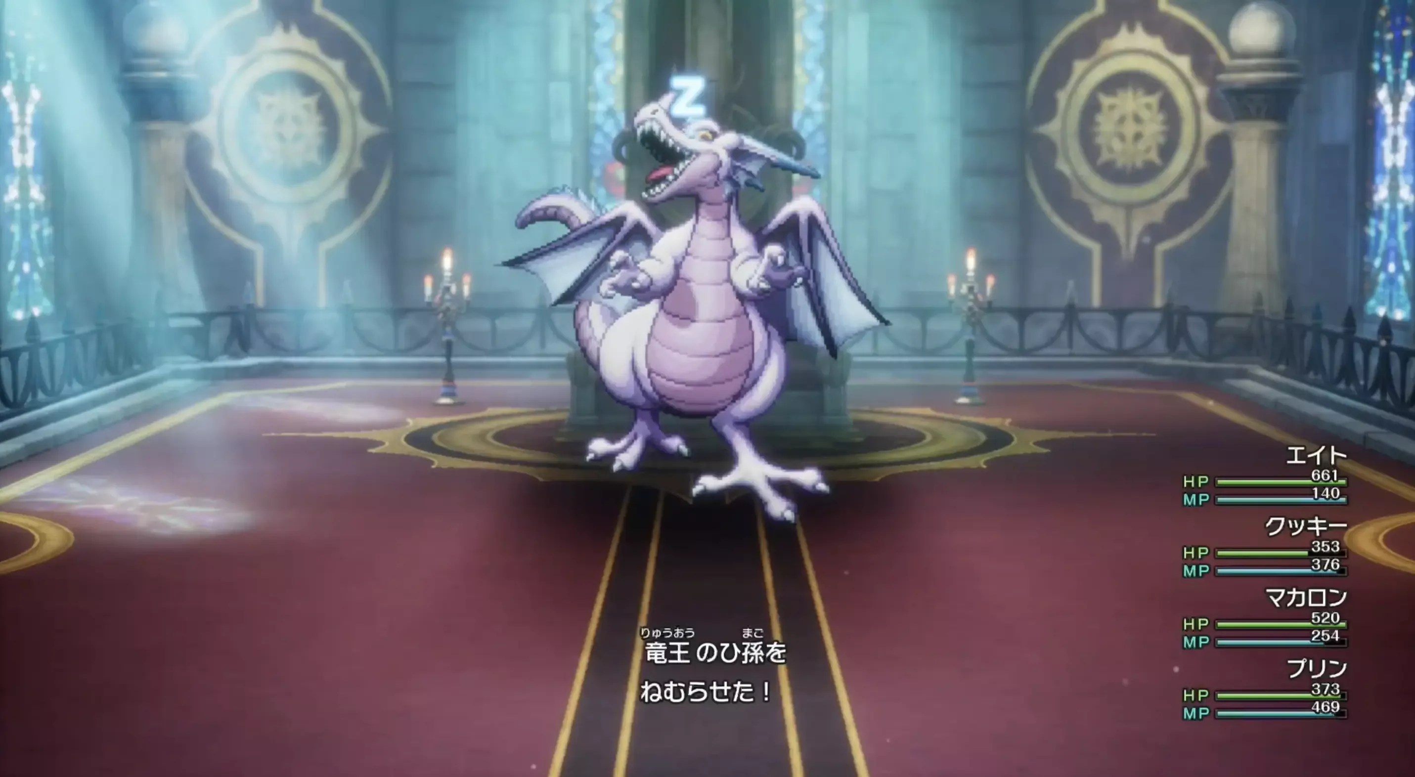 竜王のひ孫は「竜王斬り」で大ダメージを与えられます。眠らせてしまえばいてつく波動を気にする必要もないので、主人公の場合は「せいしんとういつ」→「ビーストモード」→「竜王斬り」、サマルトリアの王子の場合は「みかわしきゃく」→「ビーストモード」→「ぶんしん」→「竜王斬り」の順に発動して、せいしとういつやビーストモードの効果が切れたらかけ直しましょう。
