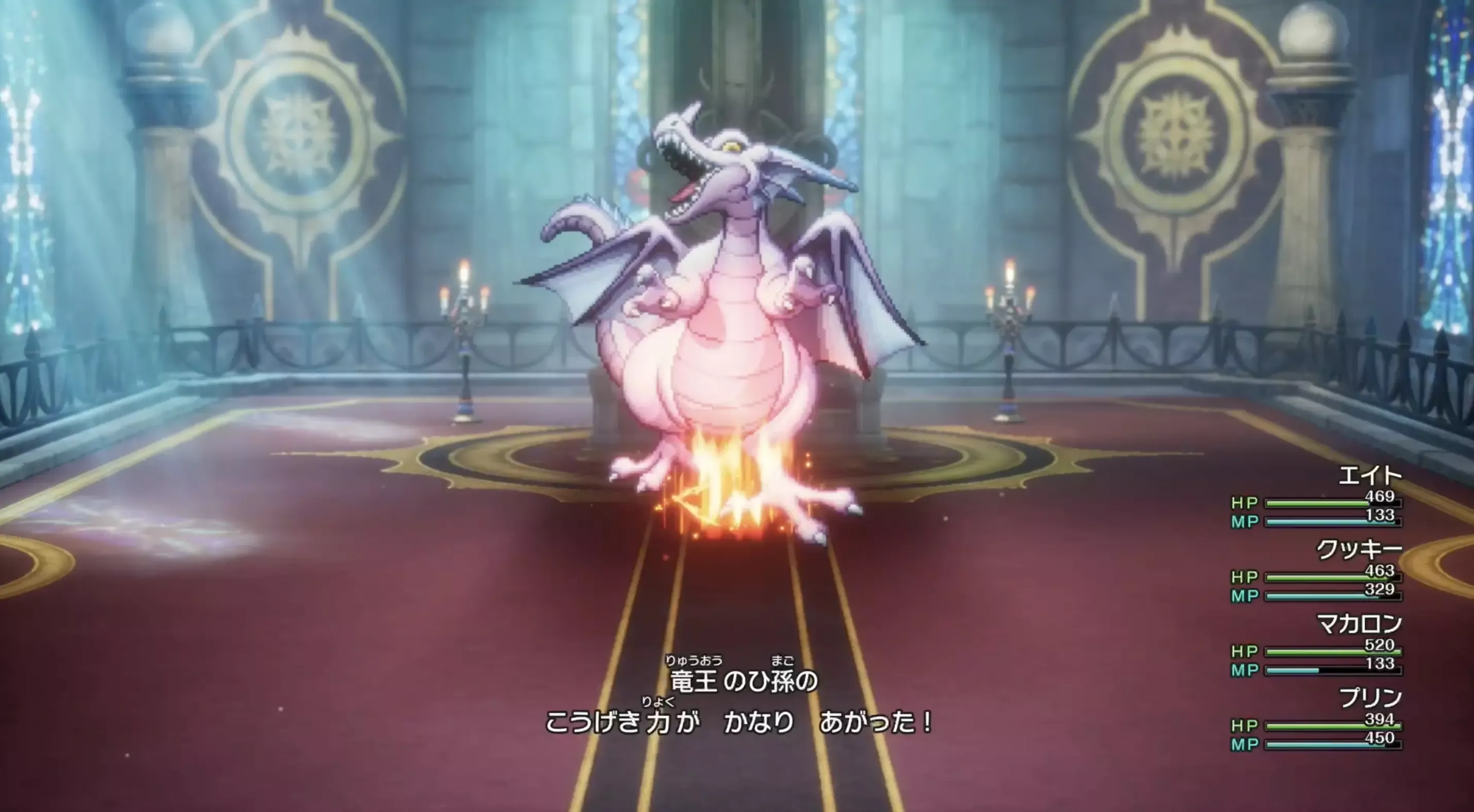 りゅうおうのひ孫は2~3回行動で、ベギラゴンを連発してきます。3回連続でベギラゴンを使うこともあるので、ムーンブルク王女の「マジックバリア」を維持しながら立ち回りましょう。