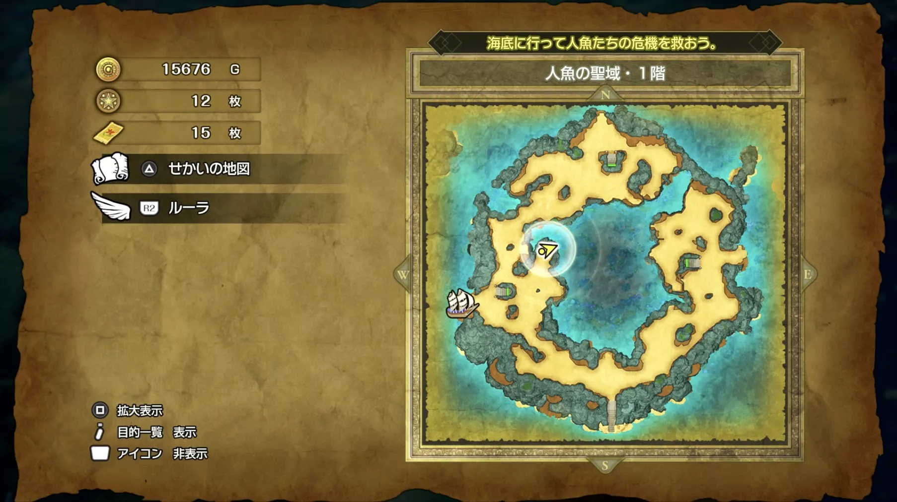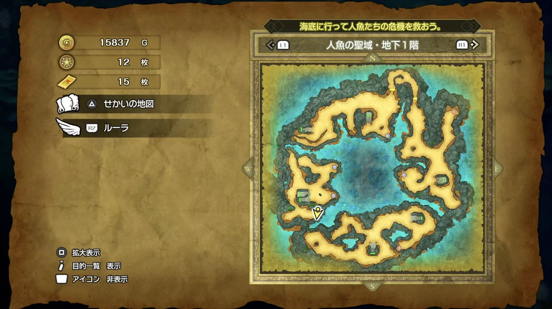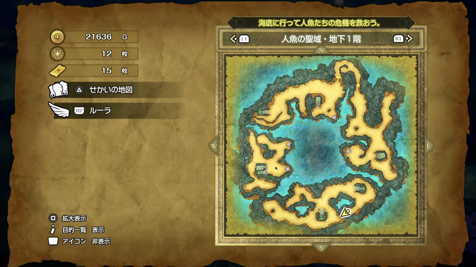 人魚の聖域のマップでは、全部で20個もの宝箱やアイテムが隠されています。特に貴重なのは「タイタニアステッキ」や「えいえんの盾」でここでしか入手できない限定装備です。