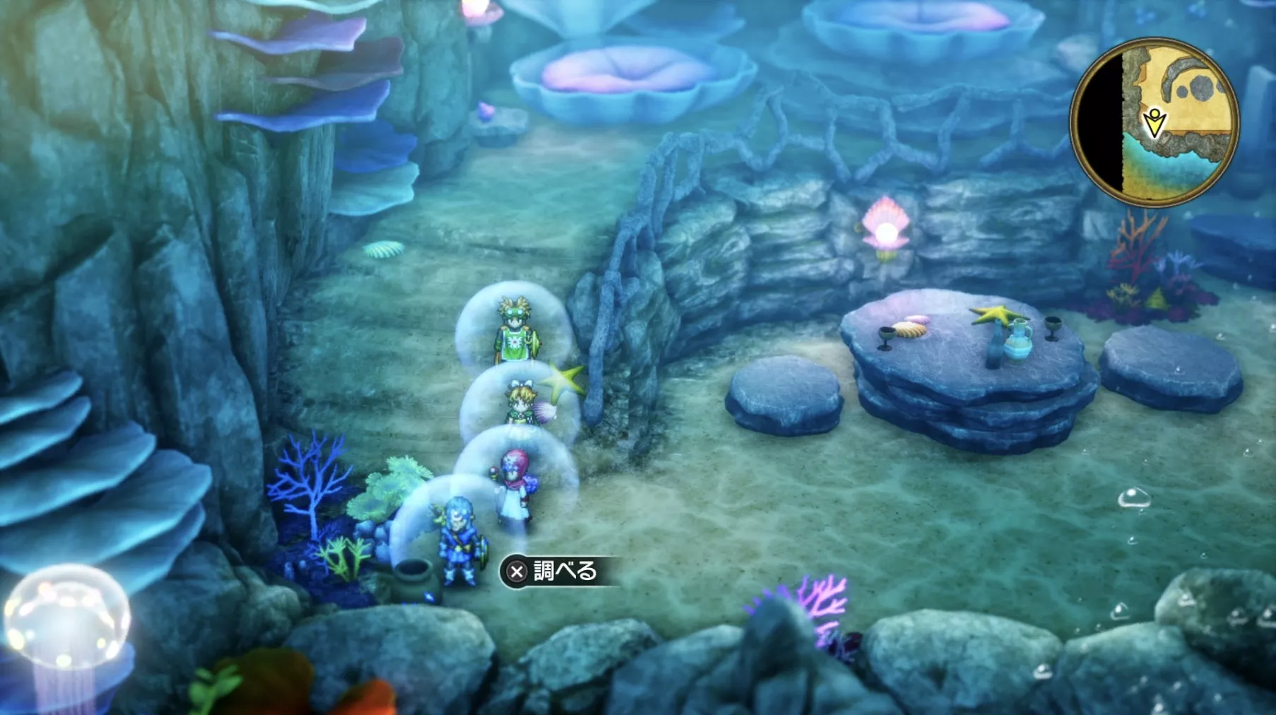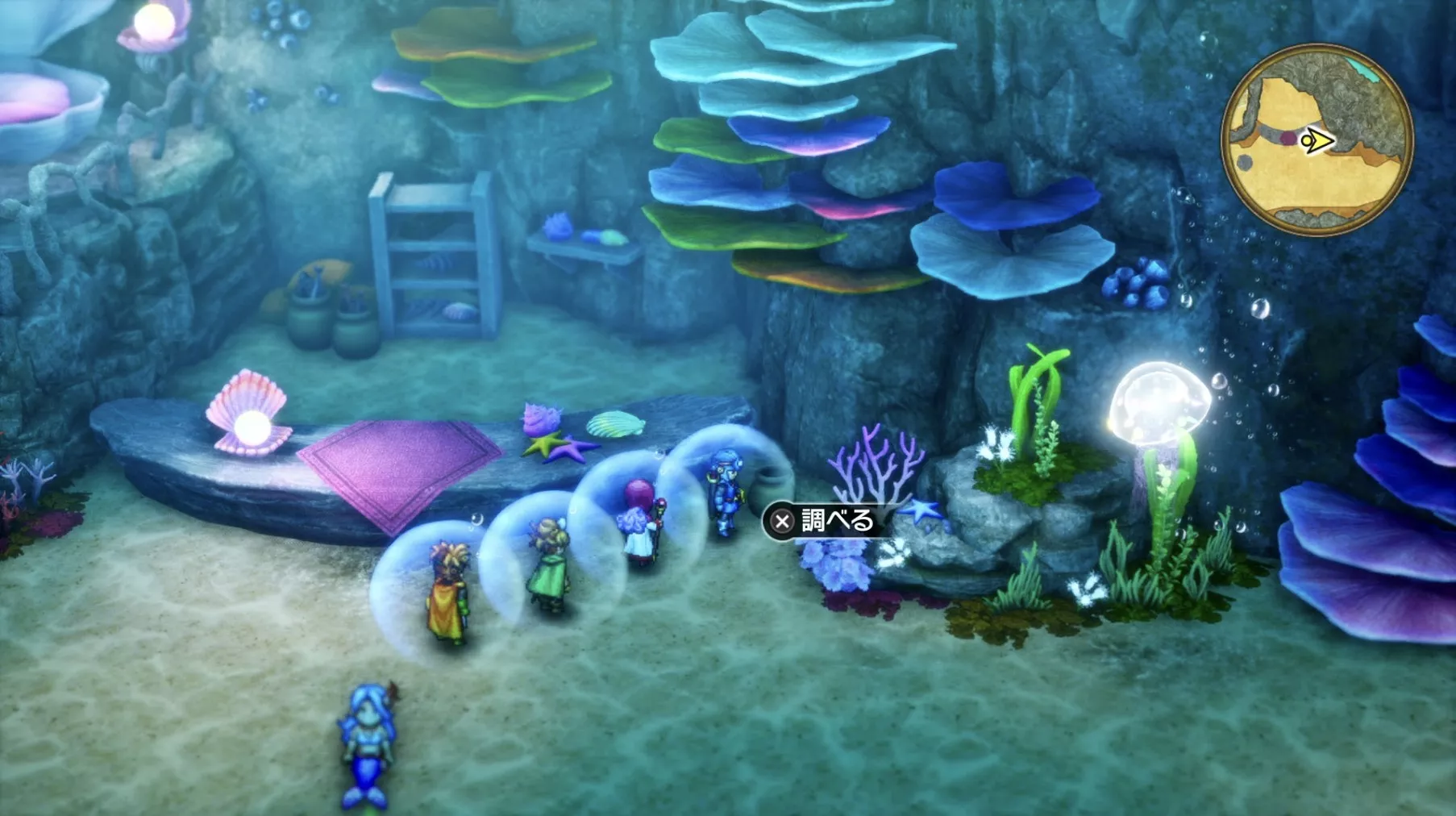「ルーラ」を使って人魚の岩場に向かいましょう。人魚の岩場の南側に向かうとイベントが発生します。