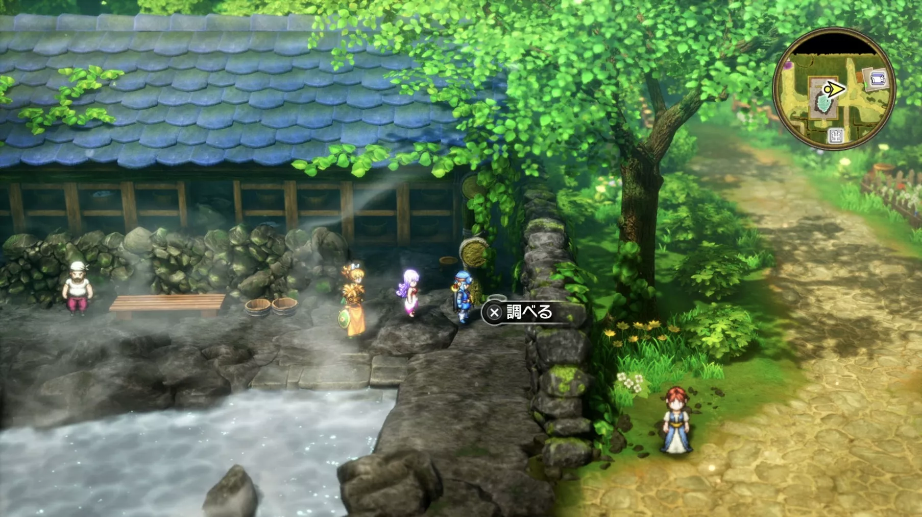 マイラに着いたら北の温泉にいるメルキドの守護者に近づきましょう。近づくとイベントが発生します。