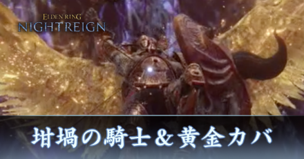 ナイトレインの坩堝の騎士&黄金カバの攻略です。ナイトレイン坩堝の騎士&黄金カバの立ち回りはもちろん、出現条件も掲載しています。エルデンリングナイトレインの坩堝の騎士&黄金カバが強いと感じる方は参考にしてください。