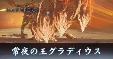 ナイトレインの常夜の王グラディウスの攻略です。ナイトレイン常夜の王グラディウスの立ち回りはもちろん、出現条件も掲載しています。エルデンリングナイトレインの常夜の王グラディウスが強いと感じる方は参考にしてください。