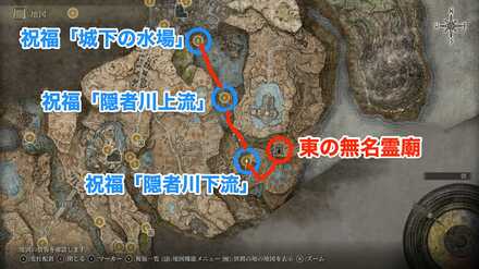 また、祝福「城下の水場」へは影の城の隠し通路から行くことができるので、下記動画の道順を参考にしてください。