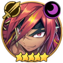 ▶︎ | 初回のバトル開始時、【闘志】を50獲得し、潜伏を1ターンの間付与する。 ターン開始時、敵全体の強化効果の数x10【闘志】を獲得し、【闘志】が最大の場合、スキルターンが0になる。 攻撃後、自身の攻撃力が20%UPする。この効果は最大3回まで累積する。 |
