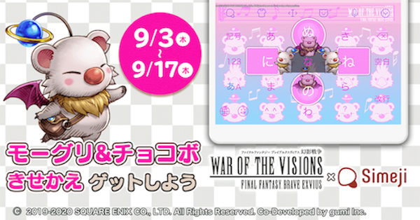キーボードアプリ『Simeji』が『ファイナルファンタジー ブレイブエクスヴィアス 幻影戦争(FFBE幻影戦争)』とコラボ!