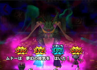 筆者は、初見ではムドーの2戦目のゲージ変化攻撃のあまりの痛さに負けてしまいました。一番の敗因は、開幕のすばやさダウン状態を残したままゲージをまたいでしまい、夢幻の障気で大きくHPを削られ、その後耐久することが出来ずに全滅しました。すばやさ2段階ダウン状態のまま戦うのは非常に危険だと実感しました。