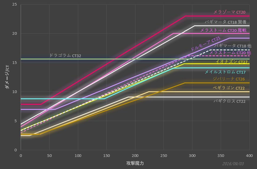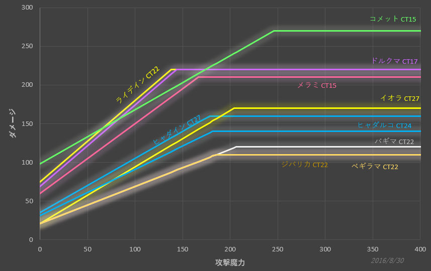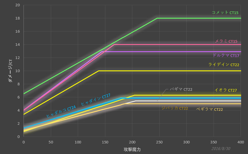 攻撃呪文の威力、CT、攻撃魔力キャップ相関グラフ