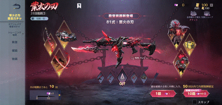 荒野行動(Knives Out)における、業火の刃殿堂ガチャのガチャシミュレータです。運試しや験担ぎ、暇つぶしなどにお使いください。