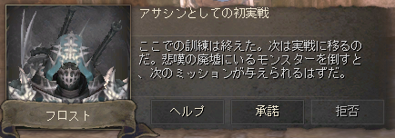 まずは画面右上に出現するメインクエストの専用の会話ウィンドウがでるので、「承諾」を押してクエストを承諾しましょう。