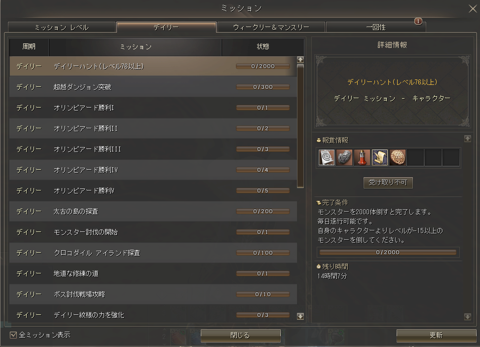 | メインクエスト名 | 目標 報酬 |