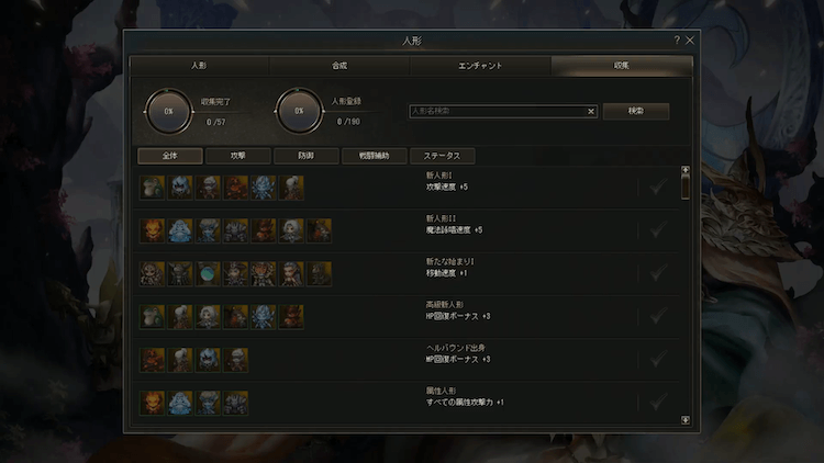 ▲こちらは収集機能の画像。一般人形も登録されるためゆっくり集めて着実に強化していこう。
