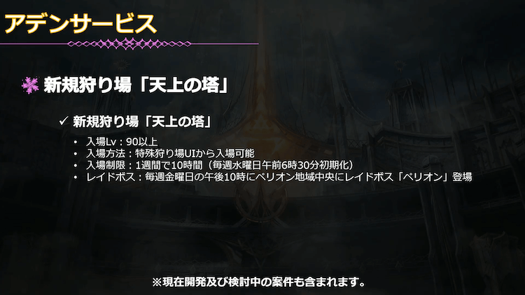 レベル90以上のキャラクターが利用できる高難易度の特殊狩り場「天上の塔」が実装されるようです!
