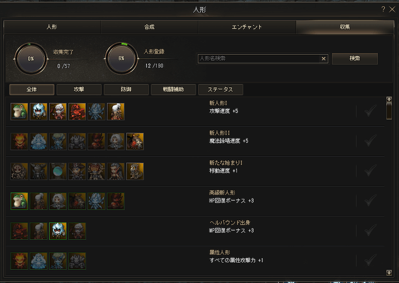 人形にはさまざまな種類が存在し、特定の人形を集めることで永続的な強化を得られる「収集」機能も存在するので、イベント報酬などからゆっくり集めていくと良いでしょう。