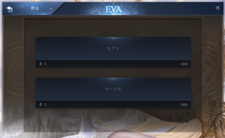 サーバー一覧からエヴァを選択しましょう。 ※エヴァが表示されていない場合は、左上の「EVA」を押すことで表示されます。 |