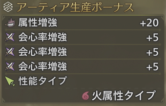 加工屋でアーティアパーツを3つ選択することでアーティア武器を生産することが可能です。アーティア武器は消費するパーツによってステータスや属性などが変わるので、カスタマイズして自分好みの武器を作成することができます。
