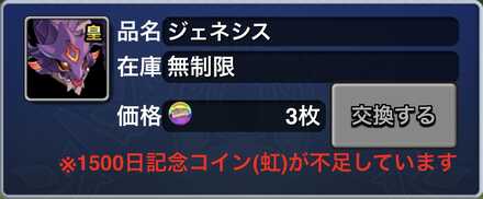1500日記念コインなどの虹コインは、強力なモンスターと交換することもできます。コインさえ持っていれば確実に交換できるので、使い忘れていないかこの機会にチェックしてみてくださいね!