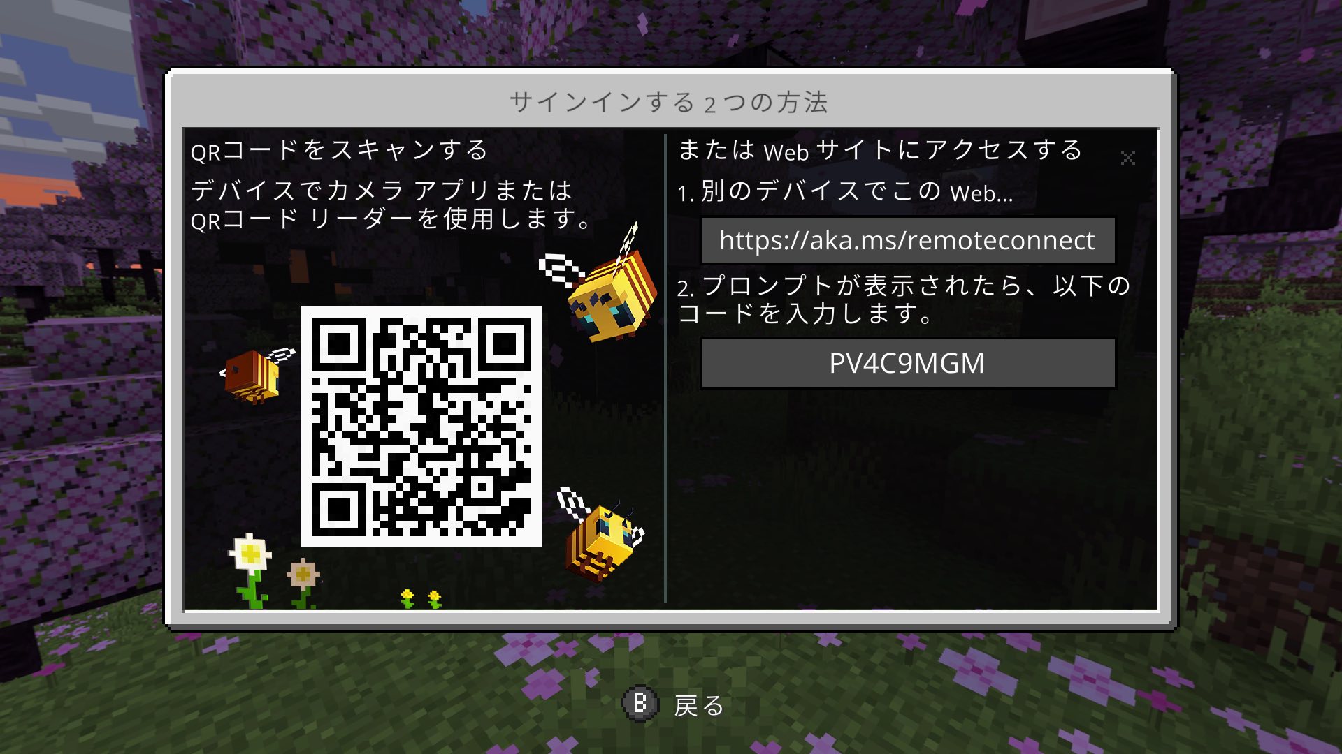 ②QRコードの読み込み、もしくは「https://aka.ms/remoteconnect」にアクセスしてコードを入力し、マイクロソフトアカウントを作成する