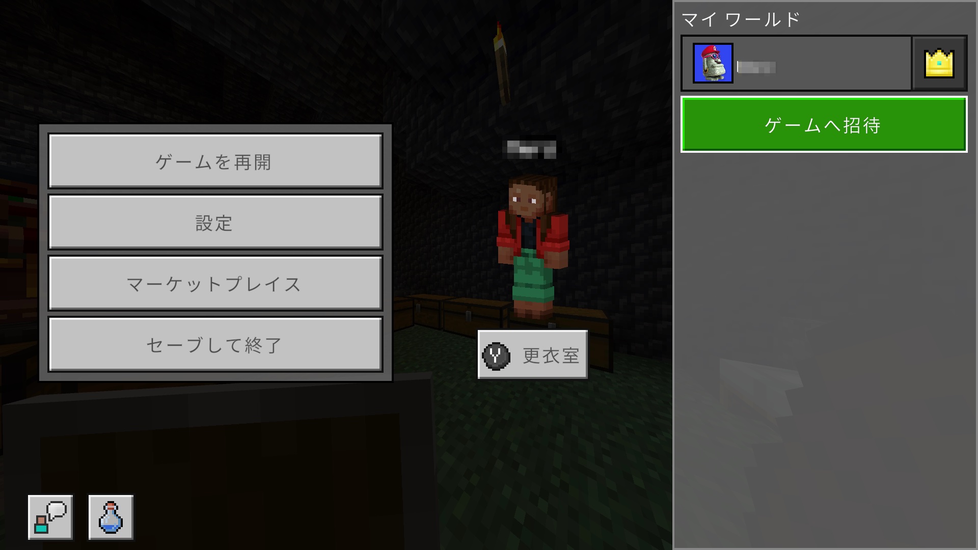 ⑤‐A 友達にワールドに来てもらう場合はワールドを開いてからポーズメニューの右上にある「ゲームへ招待」から招待を送る
