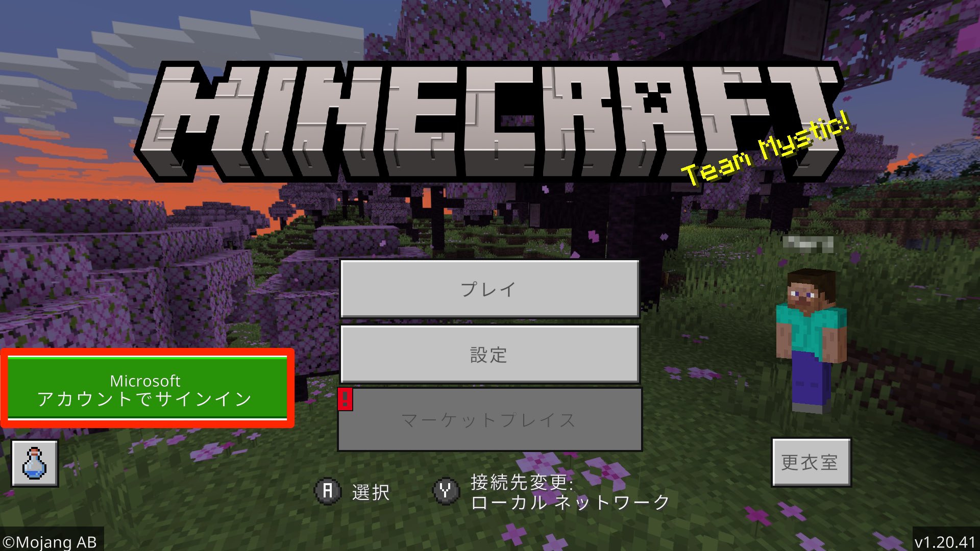 クロスプレイをするためにはマイクロソフトアカウントの作成が必須になります。ゲーム画面左下にあるMicrosoftアカウントでサインインを選択してマイクロソフトアカウントの作成しましょう。
