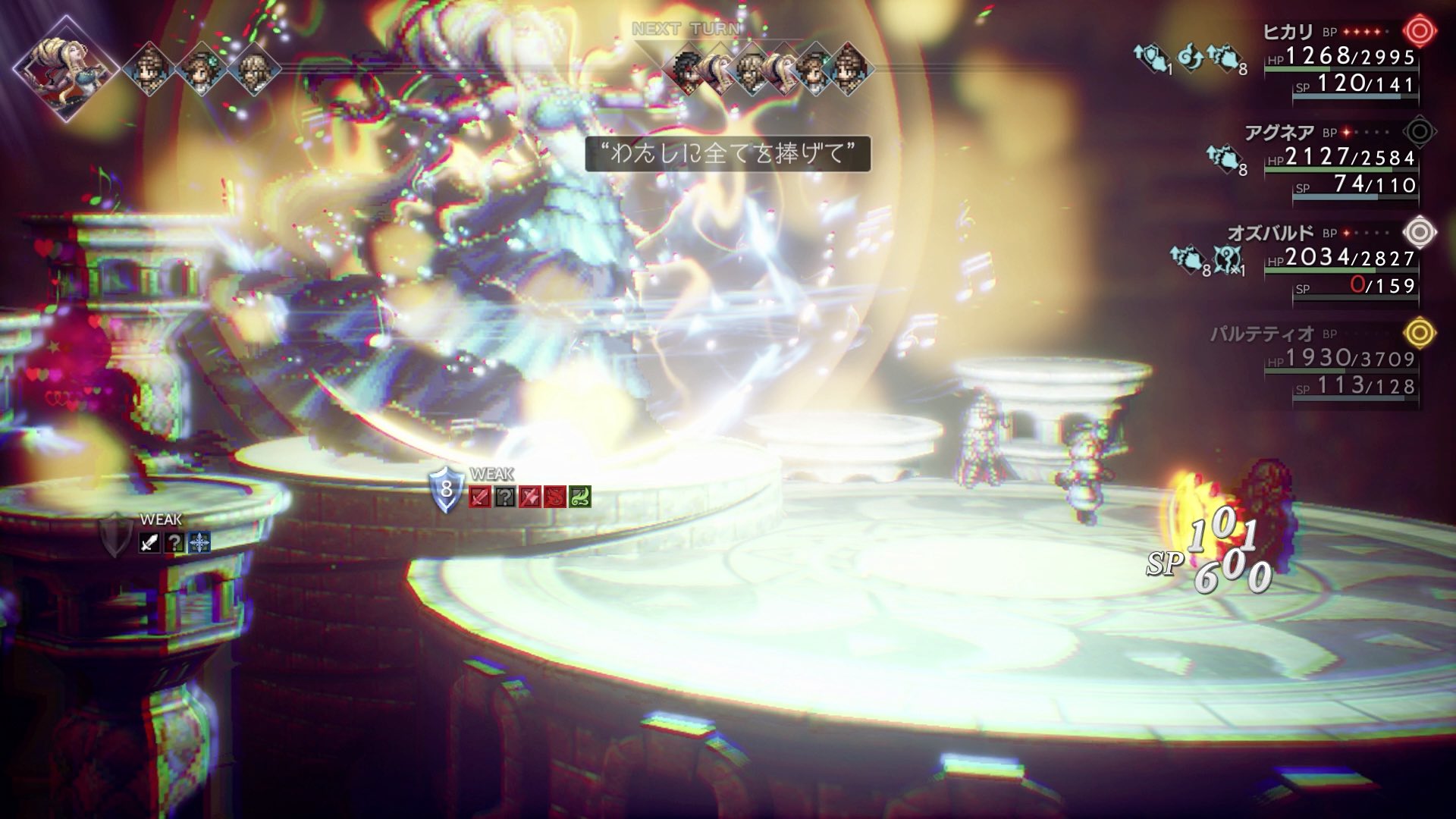 「わたしのすべてをささげて」をくらうとSPをすべて失います。アビリディが使えなくなるので、SP回復アイテムは十分に用意しておきましょう。
