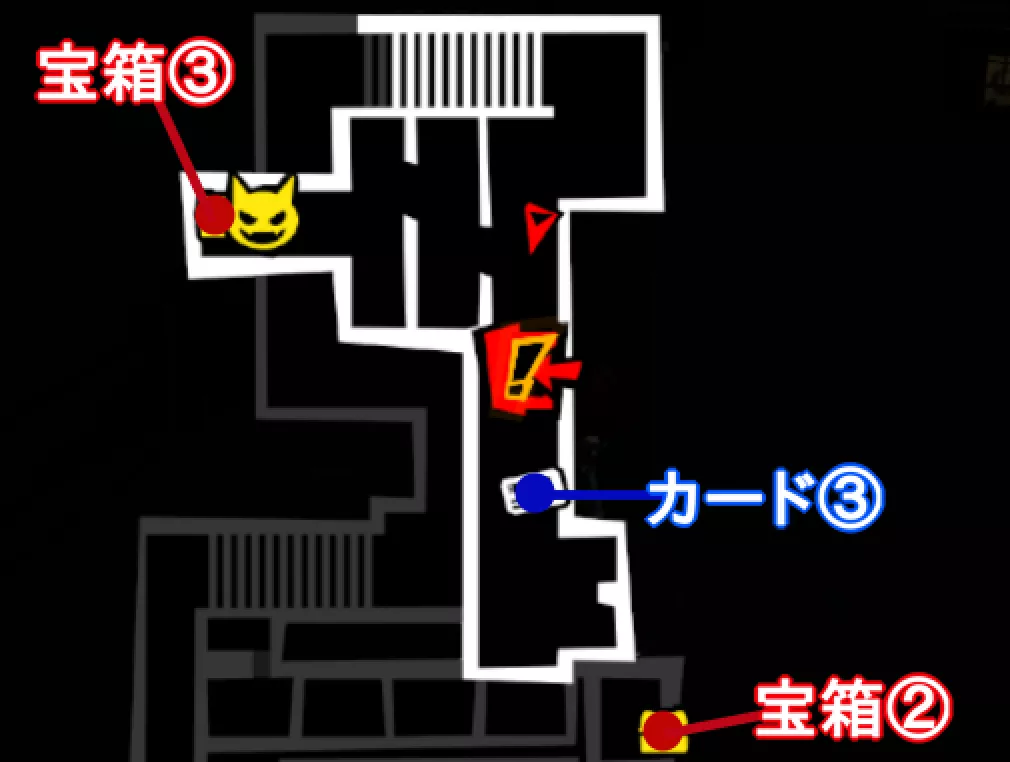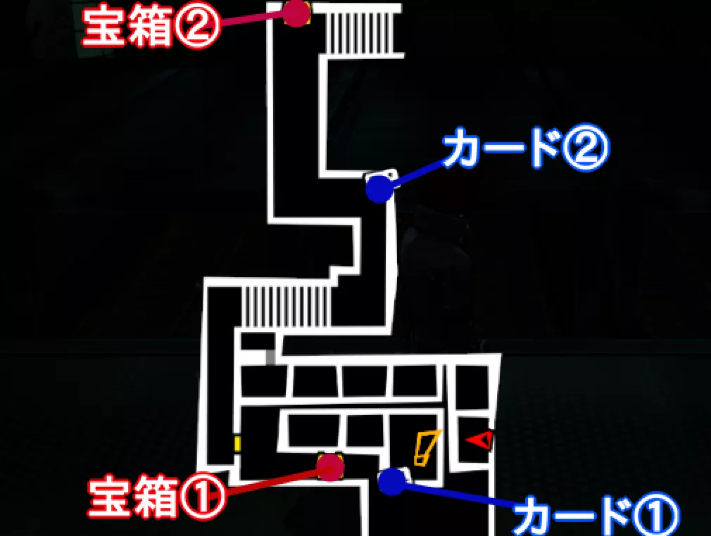 スタート地点から右奥に進んでカードを拾う(1/3) |