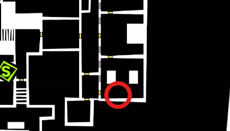 行き止まりの場所の手前のガラスを割って部屋に入る |