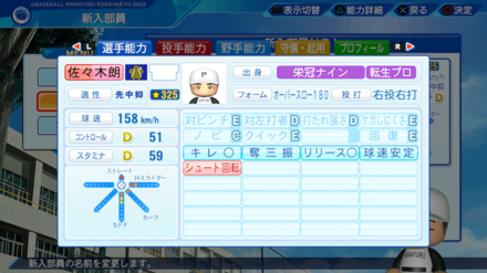 | 適性 | 球種 |