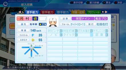 | 弾道 | ミート | パワー | 走力 | 肩力 | 守備力 | 捕球 |