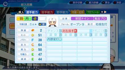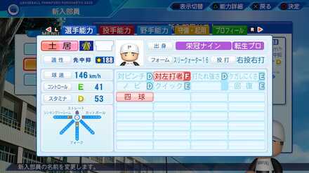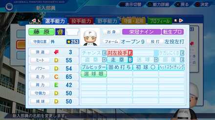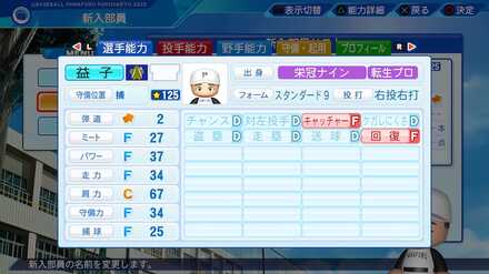 | 弾道 | ミート | パワー | 走力 | 肩力 | 守備力 | 捕球 |