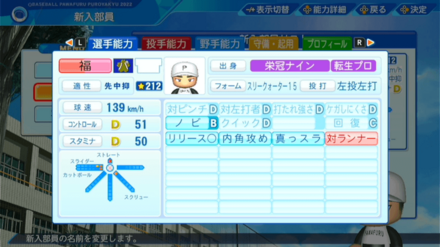 投 打: 右投右打 守備位置: 投 背番号:17 |