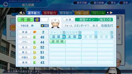 | 弾道 | ミート | パワー | 走力 | 肩力 | 守備力 | 捕球 |