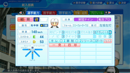| 弾道 | ミート | パワー | 走力 | 肩力 | 守備力 | 捕球 |