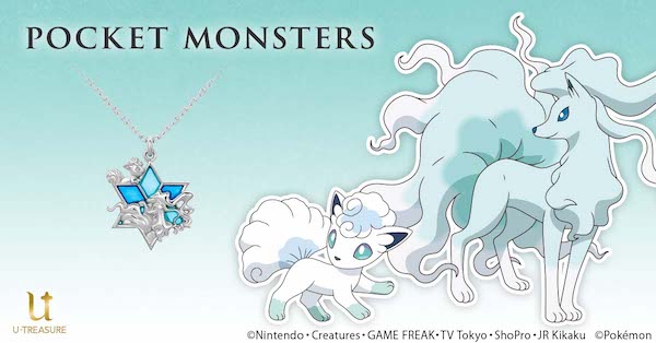 新作ネックレス。アローラロコンとアローラキュウコン 。銀色の金属とブルーの樹脂で、こおりタイプを表現。