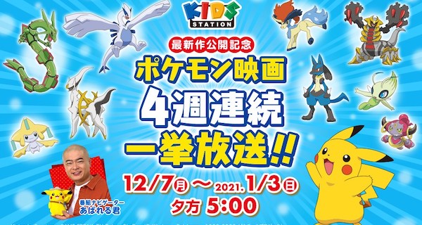『劇場版ポケットモンスター ココ』公開記念!12月7日(月)からキッズステーションでポケモン映画を4週連続一挙放送!ポケモン大好き あばれる君 が番組ナビゲーターとして出演!