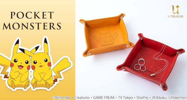 レザーのジュエリートレイ新発売。オスとメスのピカチュウをデザイン。
